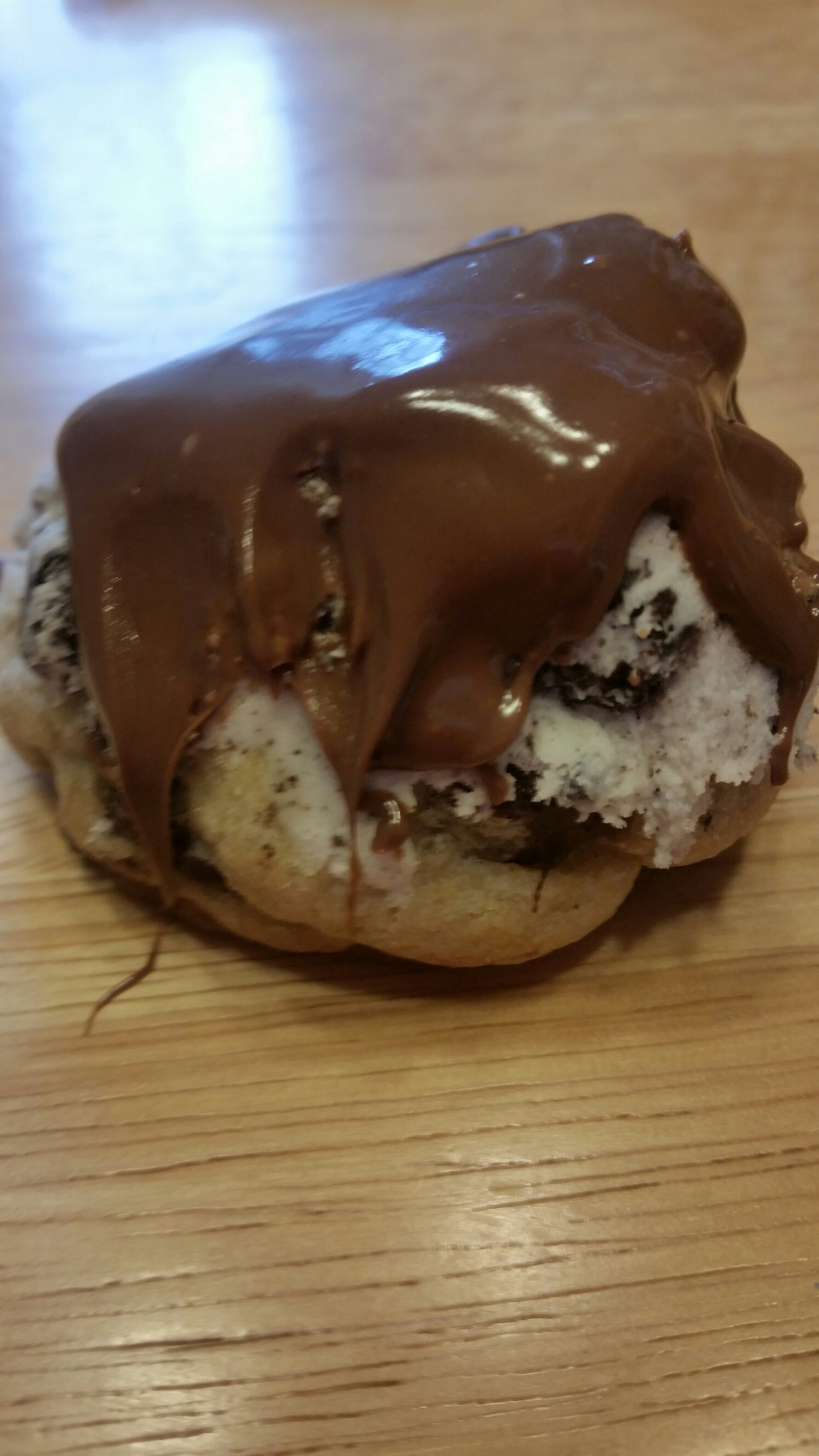 Instead of bringing in chocolate chip cookies to work tomorrow, I decided to “cheescape factory” them.. as in taking it to another decadent level bc sometimes “just” a chocolate chip cookie is not enough. From the top down, these have an oreo filling with melted chocolate on top, a Reese’s peanut butter filling with melted chocolate, and chocolate frosting. You are welcome Sunday ESPN Radio coworkers!