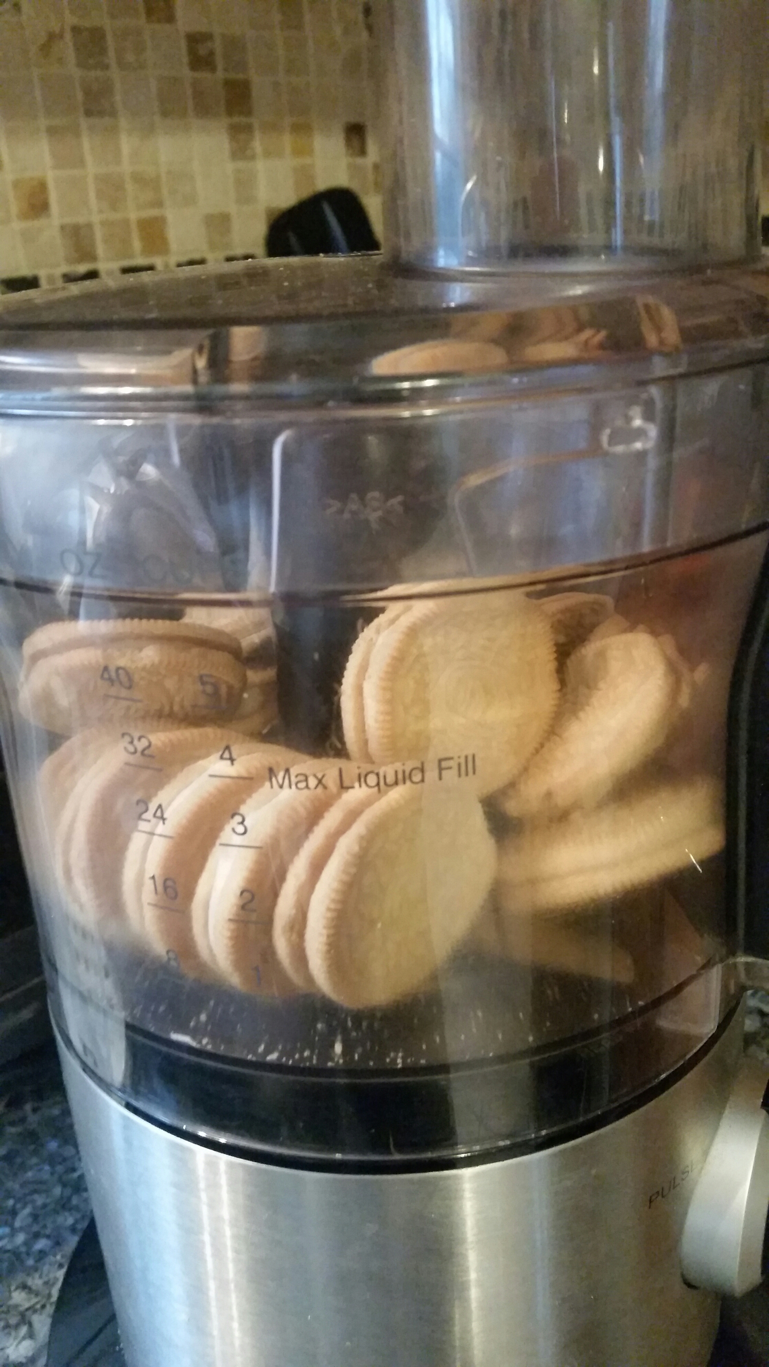 I thought I would make something with oreos today – both the golden and Mega stuff kind. (Partly because a certain someone in our house – not me – opened each bag this week and ate one of each. So I felt compelled to use the remaining ones in a treat)