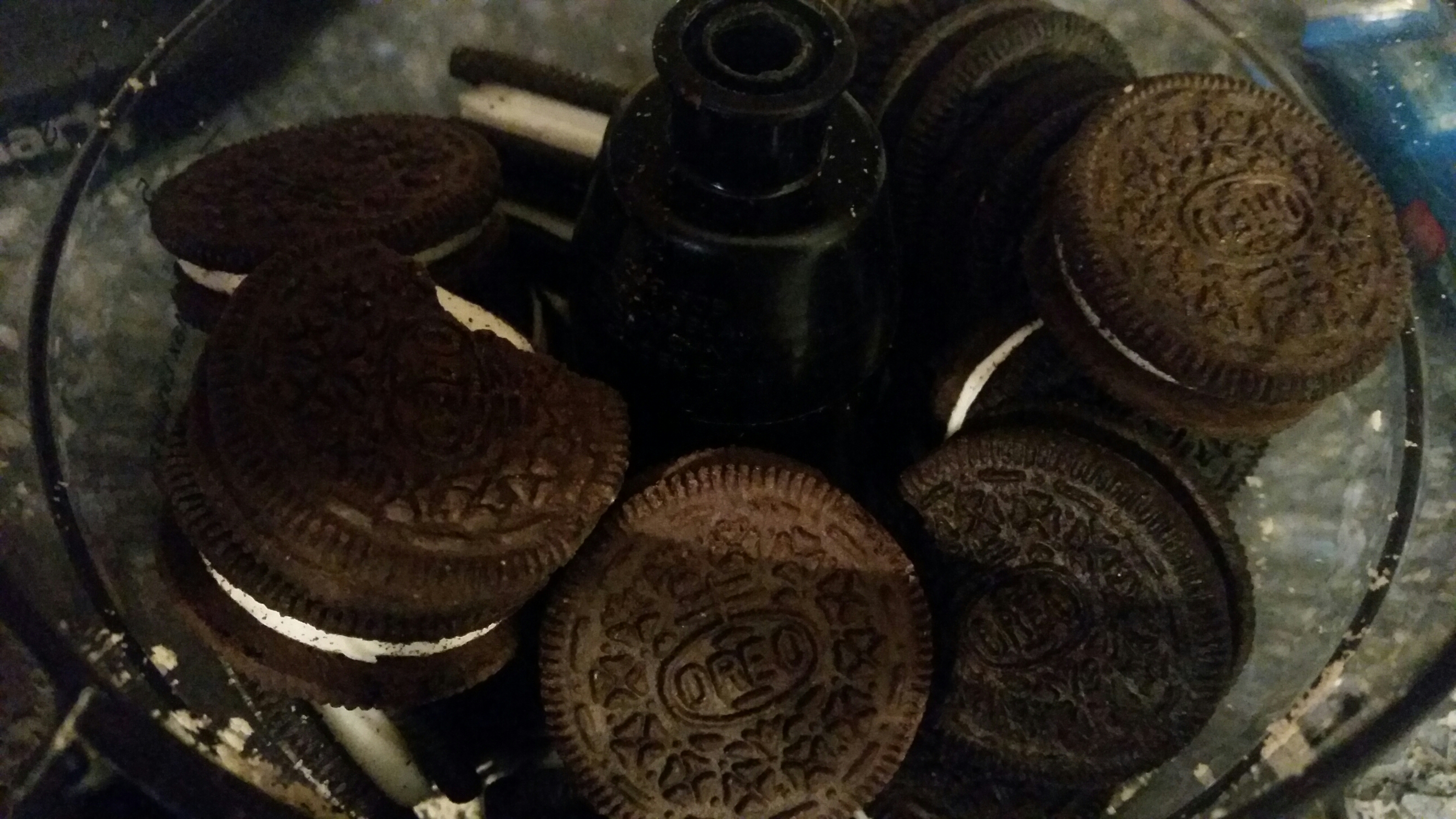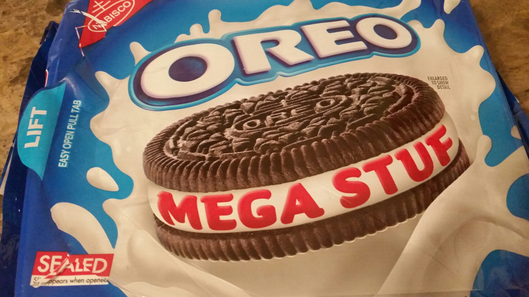 1 pkg mega stuff oreos, 4 oz cream cheese (softened)