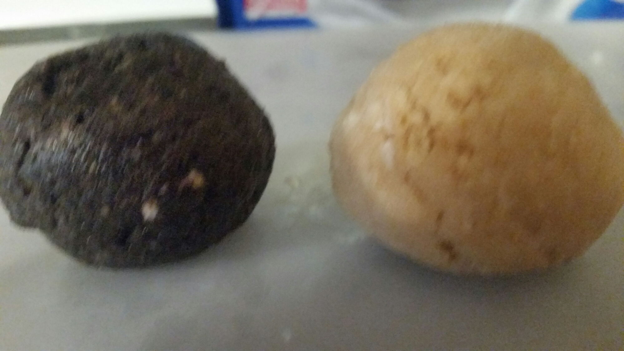 Melt chocolate in 45 second increments until you can stir it smooth. I used semisweet chips, white chips and milk chocolate chips.