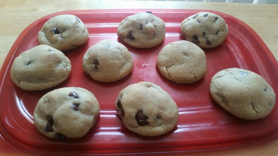 I have a ton of chocolate chip cookie recipes in my “rotation.” Each one is a little different,which is good for me, because I never like making the same things over and over. The unique ingredient is active yeast. One more thing, the cookies are large, so this recipe makes only 15. You can double the recipe to make more, or you can make the cookies smaller. If you make them smaller, adjust your cooking time to 6 to 8 minutes.