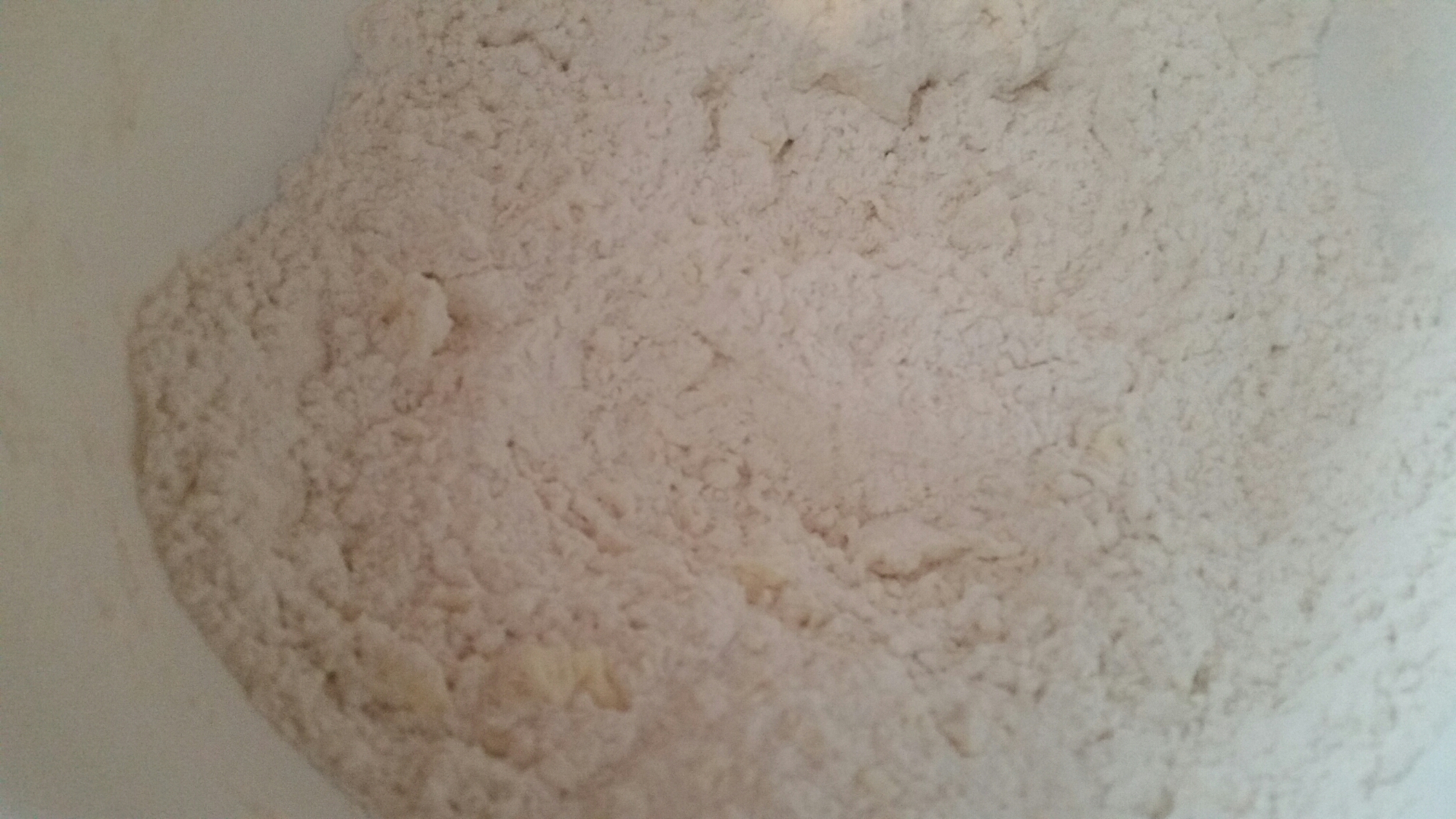 In another bowl, combine flour, baking soda and yeast, and cut in the 1/4 cup cubed butter. I used my pastry cutter.