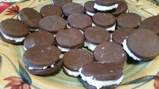 Spread filling between two cookies. Store in covered container.