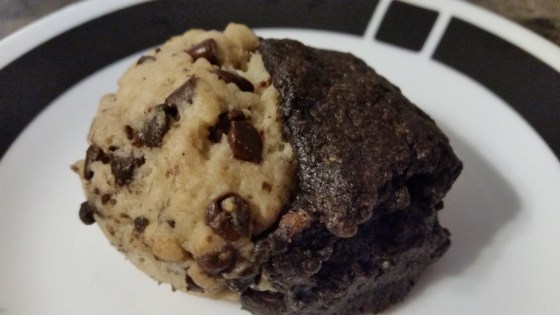 To assemble the cookies – scoop 2 tbs of chocolate dough and 2 tbs of chocolate chip dough and gently smoosh together. Chill 1 hour. Preheat oven to 350. Stagger on cookie sheets lined with baking liners (8 on a sheet). Bake 12 -18 minutes until lightly browned on bottom. Let cool 10 minutes on cookie sheets. Cool completely and store in covered container.