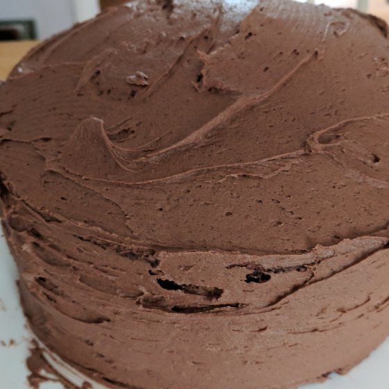 Frosting – 6 tbs butter (softened), 6 tbs Crisco, 3 cups powdered sugar, 2 tsp vanilla, 1/3 cup cocoa, 1/8 cup milk or water.