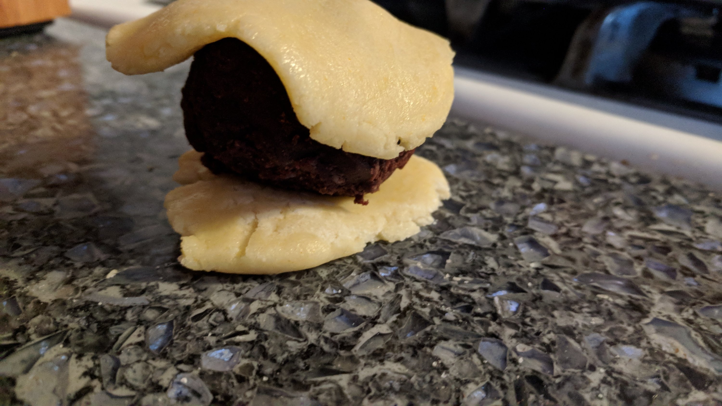 I made some brownies and when I cut them, they seemed more cakey than I prefer,so I made them into brownie pops. And I stuffed them into cookies because that is who I am and what I do. (Ask anyone who knows me). 😋. These don’t take a lot of ingredients and are not complicated to make. ( Something easy to bake with the kids!)