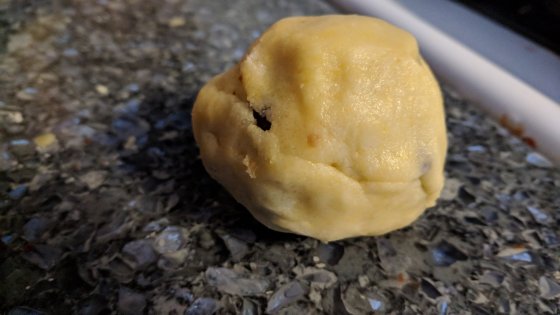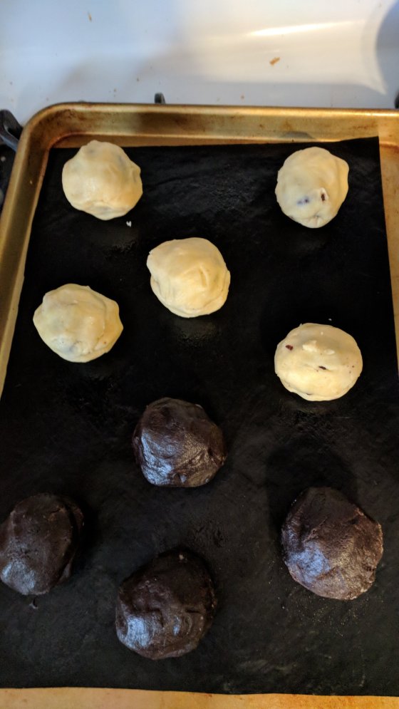 Directions – preheat oven to 350. mix ingredients with a wooden spoon. (If it seems a little dry, add another tablespoon or two of water). Using a cookie scoop, scoop out some dough.