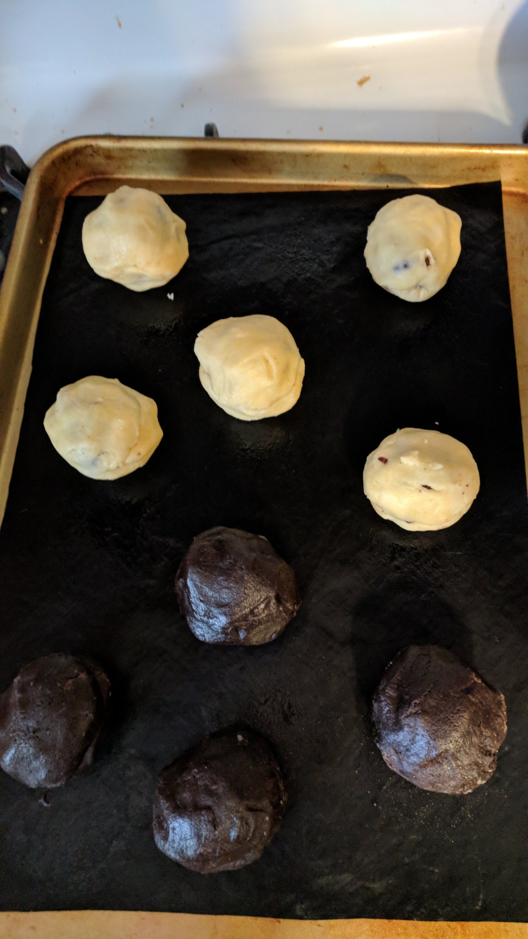 Place non stick baking liner on cookie sheet. Stagger 8 cookies on each.