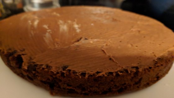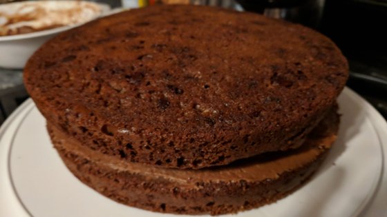 - Place one cake layer, flat side down, on cake plate