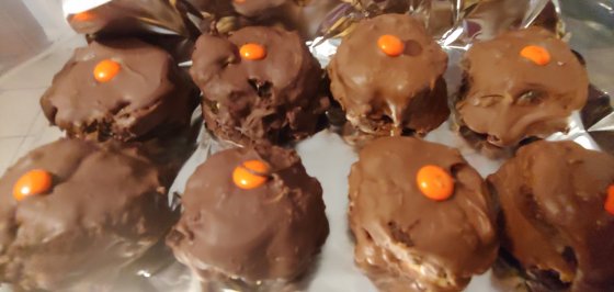 Rob requested Ring Dings, a throwback sort of treat. I am not sure if they are made by Hostess or Drake’s. They are a chocolate cake round with marshmallow creme filling and topped with a chocolate coating. Rob asked if I could do a peanut butter filling as well, so I did both. Instead of filling the treats, I split them horizontally, filled them and then topped them with melted chocolate. I made quite a mess, with the chocolate cake recipe I used for the marshmallow filled ones, but think people at work will stillfind them delicious! IbI used the king arthur flour flourless cake recipe for the peanut butter filled ones. That actually worked much better with slicing and filling. Next time, I will just bake a cake or cupcakes.π