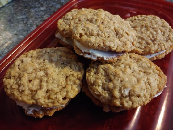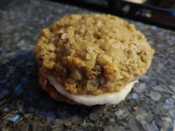 I was looking for something different to bake because I have been making a lot of chocolate chip cookies lately (although I use different recipes). I was running errands and walked by a Little Debbie display and saw the oatmeal cream pies. I loved those as a kid! I thought I would make a homemade version to bring to work. My twist is instant oatmeal packets (I used brown sugar and maple flavor).