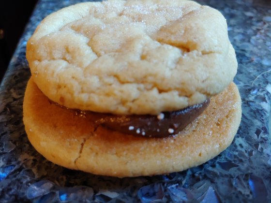 I felt the need to bring in another treat tomorrow, so I felt a peanut butter sandwich cookie would partner well with the oatmeal chocolate chip treats. I opted for a chocolate filling bc peanut butter and chocolate are a perfect marriage.