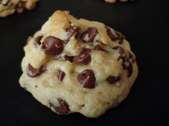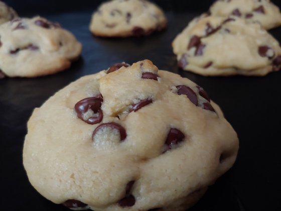 What’s better than a chocolate chip cookie? A giant chocolate chip cookie – big, puffy and soft (and a little gushy, if it is still warm). These use melted butter and need to be refrigerated for at least a couple of hours in order to be puffy!