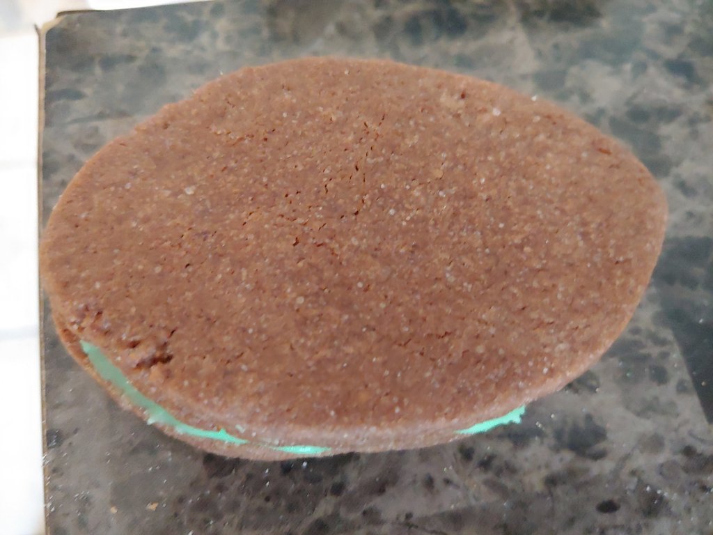 Tomorrow is a huuuuuge matchup for my Bills, so I really had to step up my game day cookies for my ESPN Radio crew! Our opposition is the Patriots! (Cue the Dr Evil laugh from Austin Powers) so, in the spirit of the holiday season and football, I present treat # 1 – chocolate cutout football sandwiches with a buttercream filling, colored green! I also found a chocolate extract to use in this recipe. If you don’t have it, you can always use vanilla