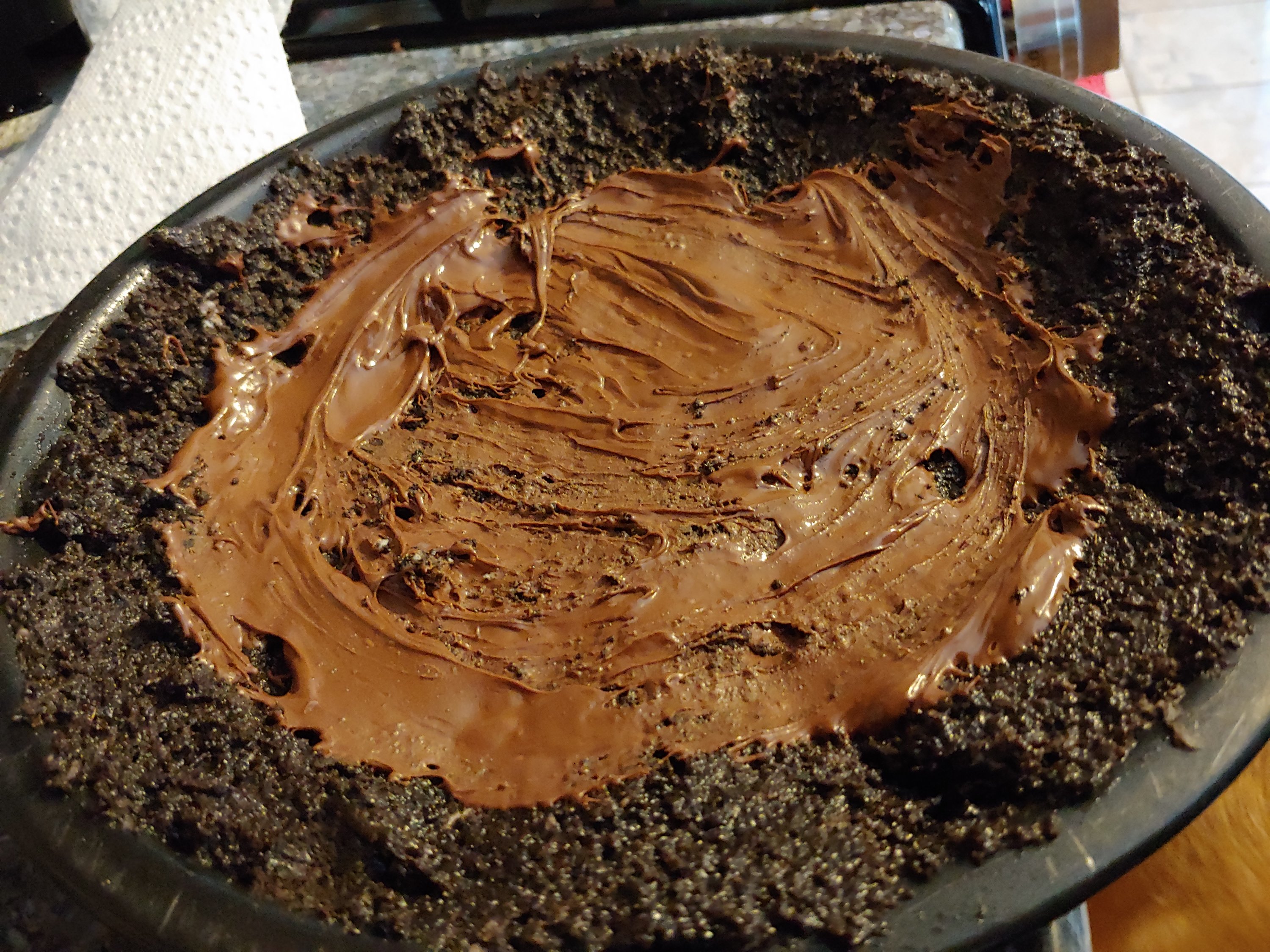 Directions – finely crush Oreos with a rolling pin or in a food processor.