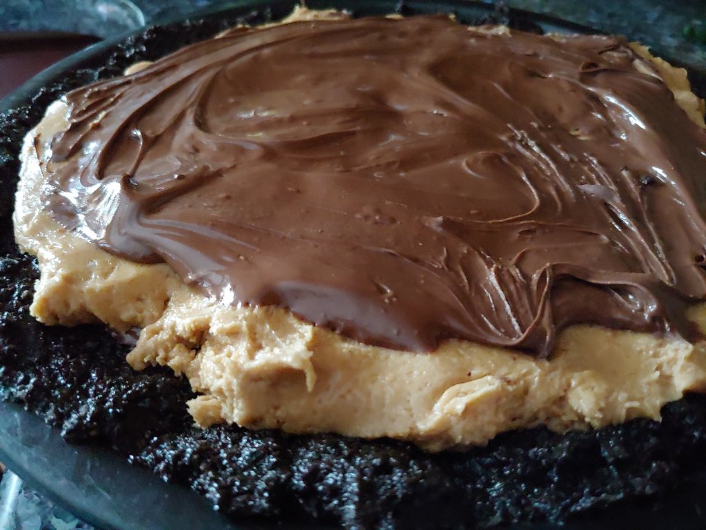 Today’s treat pays homage to the best candy ever created – the Reese’s egg. I know Reese’s rolls out stuff for all the holidays – halloween,Christmas, valentine’s day, but the Reese’s egg stands out for some reason. Not sure why. With all the social distancing and staying home and limiting time outside the home, I bring you a recipe that brings the Reese’s eggs to you. And in a pie., with an Oreo crust. And melted chocolate on top. If you don’t have the Oreos, you can use a Graham cracker crust, or just make the peanut eggs. I was actually going to do a video for this recipe, but with all the hair salons closed, I am 3 weeks overdue for my hair appt with a while to go before my next appt. The only time i ever cut my hair was when I was 4 and it did not go well. so I will patiently wait my next appointment with Lori… Thus today is merely a blog. 😄