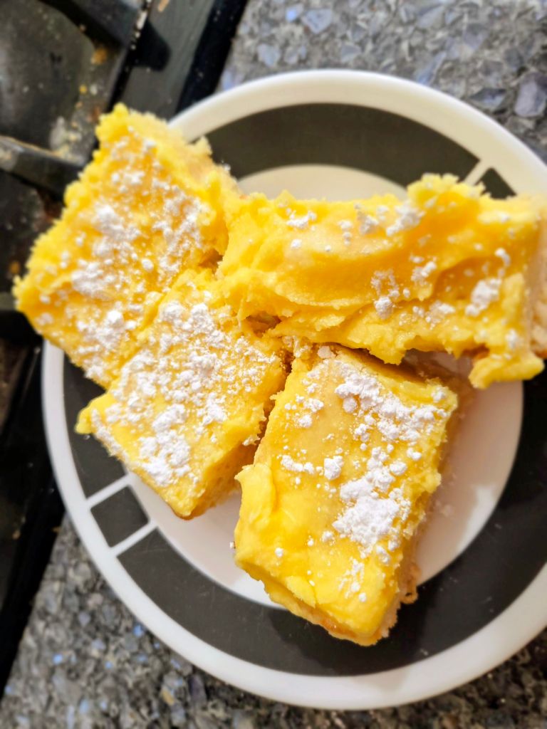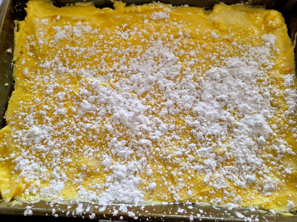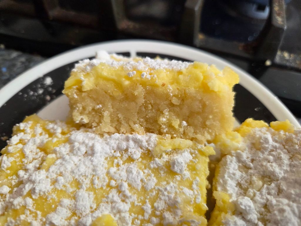 For my final treat of 2025, I made lemon frosted cake mix squares.  I didn’t have a lemon cake mix, so I used a white one and added some lemon extract, along with the other ingredients.  These are for my friend rib’s birthday and as luck for the Sabres, who go for their 10th straight win tonight against the Stars, one of the best teams in the NHL.