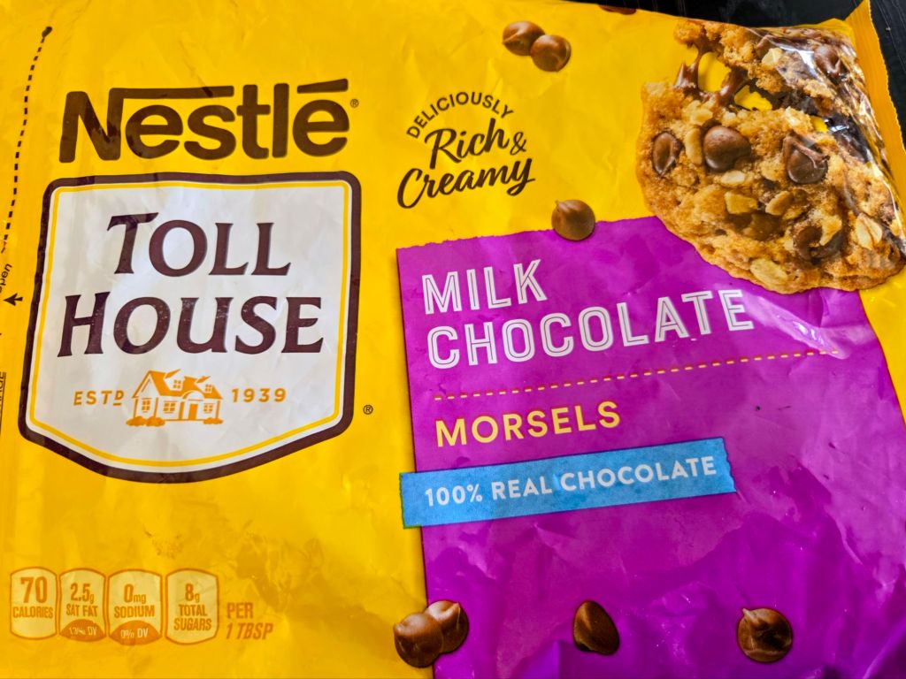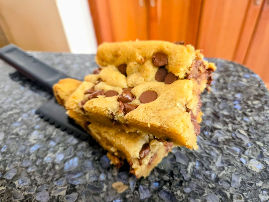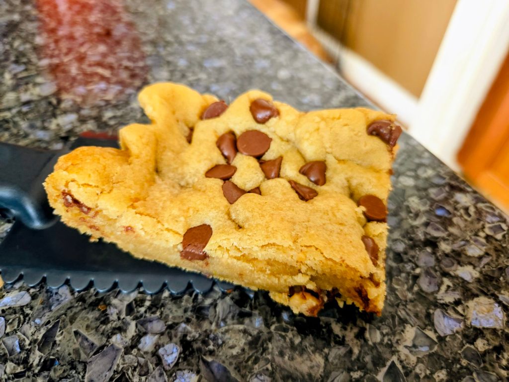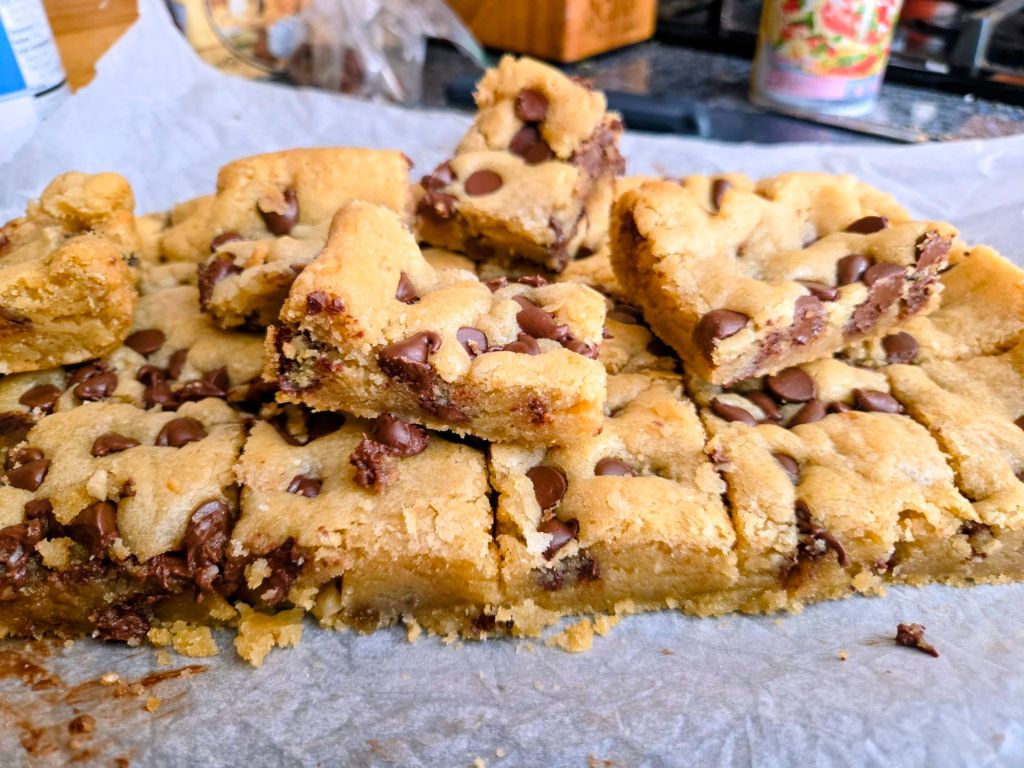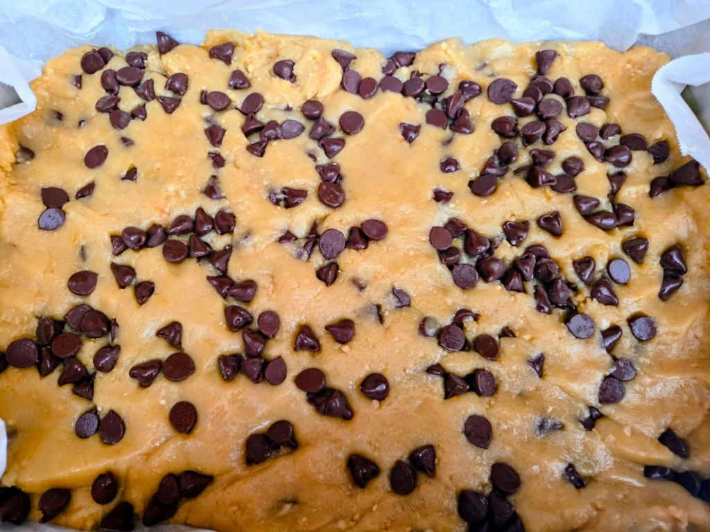 A simple mid-week treat to help heat up the house on another frigid morning – milk chocolate chip bars. I used milk chocolate, but you can use whatever flavor chips you want.