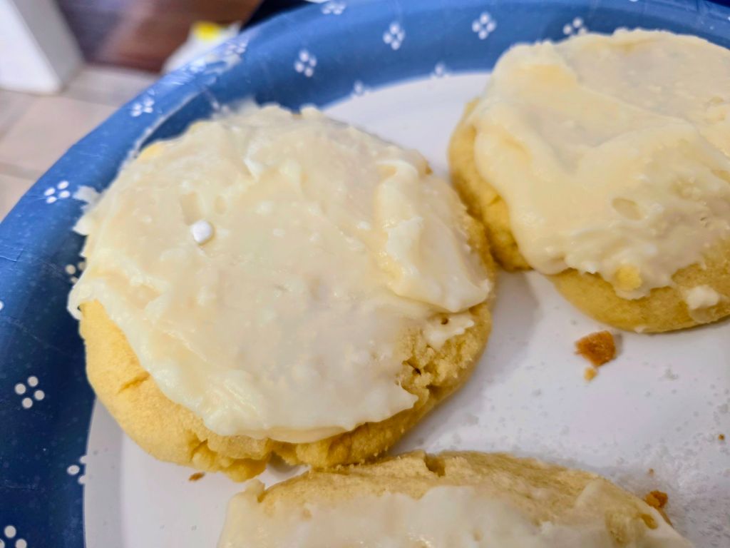 Directions – preheat oven to 350 degrees. Line a cookie sheet with nonstick baking liners. In a bowl, mix melted butter and sugar. Blend in yolk and vanilla. Stir in dry ingredients. Scoop out 1/4 cups of dough. Roll into balls and slightly flatten. Stagger on prepared cookie sheet. Sprinkle tops with extra sugar. Bake 11 to 14 minutes, no longer. (Bottoms will be light golden). Cool completely. Frost with a simple vanilla frosting, if desired.