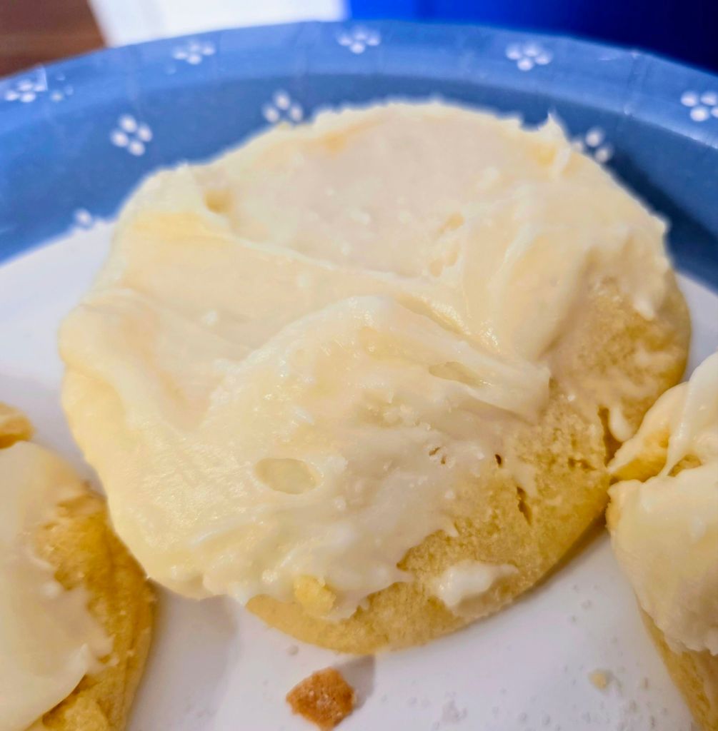 In a bowl, combine butter, powdered sugar and vanilla. Add enough milk or cream to get the consistency you want. Frost cookies. Store in covered container.