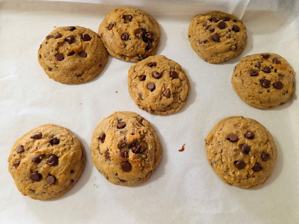 On this Friday,  I present milk chocolate and semisweet chocolate chip cookies with crushed cookie dough oreos.   (I wanted to use up the oreos I had left).  These are large and puffy and spectacular!