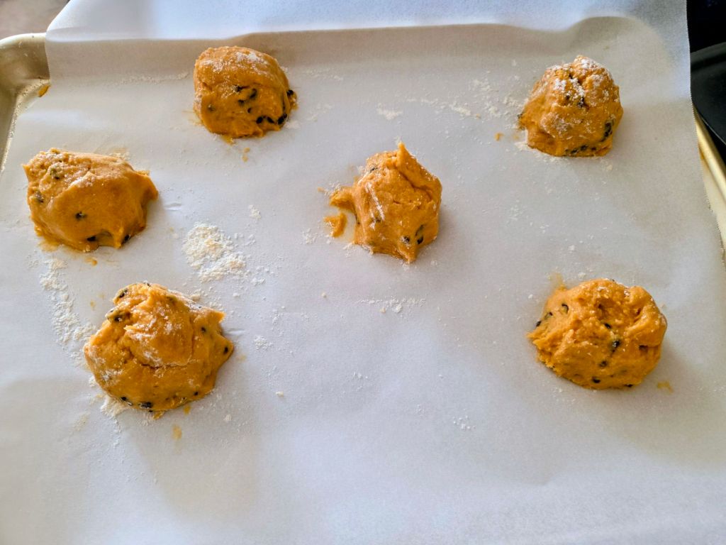 Directions – in a bowl, cream crisco, sugar and brown sugar. Add egg and vanilla. Blend in dry ingredients then baby food. Stir in chips. Evenly divide into 12 doughs. Chill a few hours. When ready to bake, preheat oven to 400 degrees. Line a cookie sheet with parchment paper. Stagger cookies on sheet.