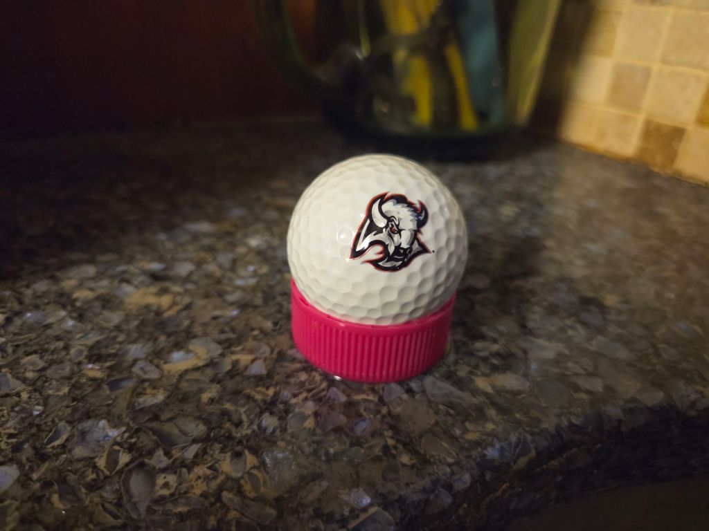 Note – my parents gave me this Sabres golf ball in 1999 and I have had it on display next to our kitchen sink since we bought our house in 2001. Plenty of lean years since then, but my Fandom never left me.