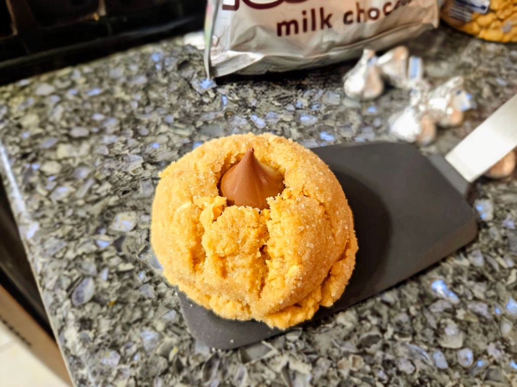 Today’s treat – brown butter peanut blossoms.  I know they are very popular this time of year, so I whipped up a batch this morning.   I added some finely ground peanuts, and rolled the doughs in sugar before baking. And of course, topped with  hershey kisses!