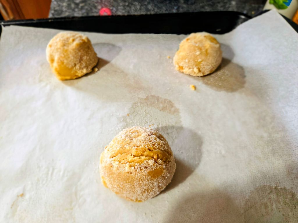 I melted the butter to speed up the process.  I probably won’t do so next time and will use softened butter.  These cookies spread out a little more than I prefer.