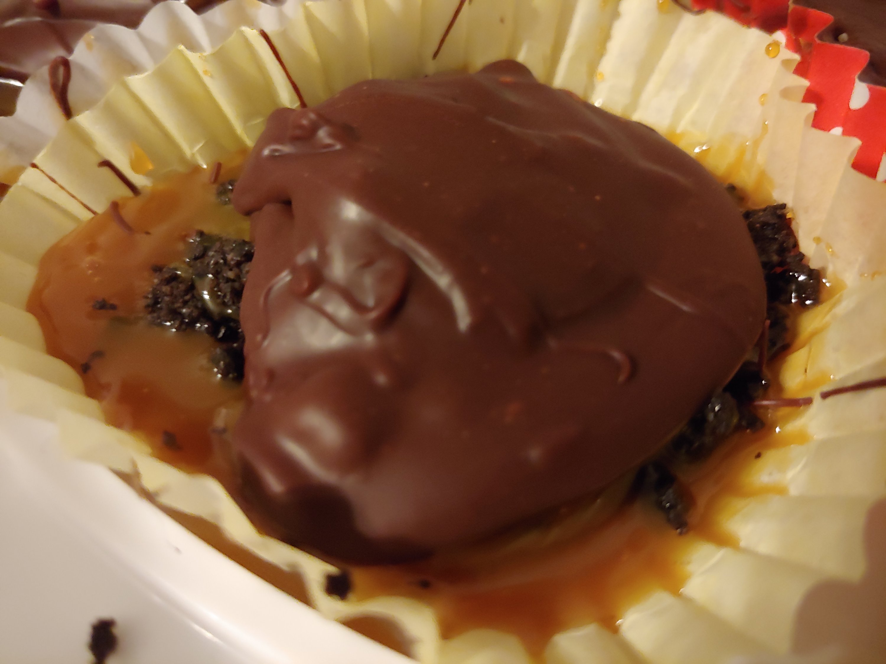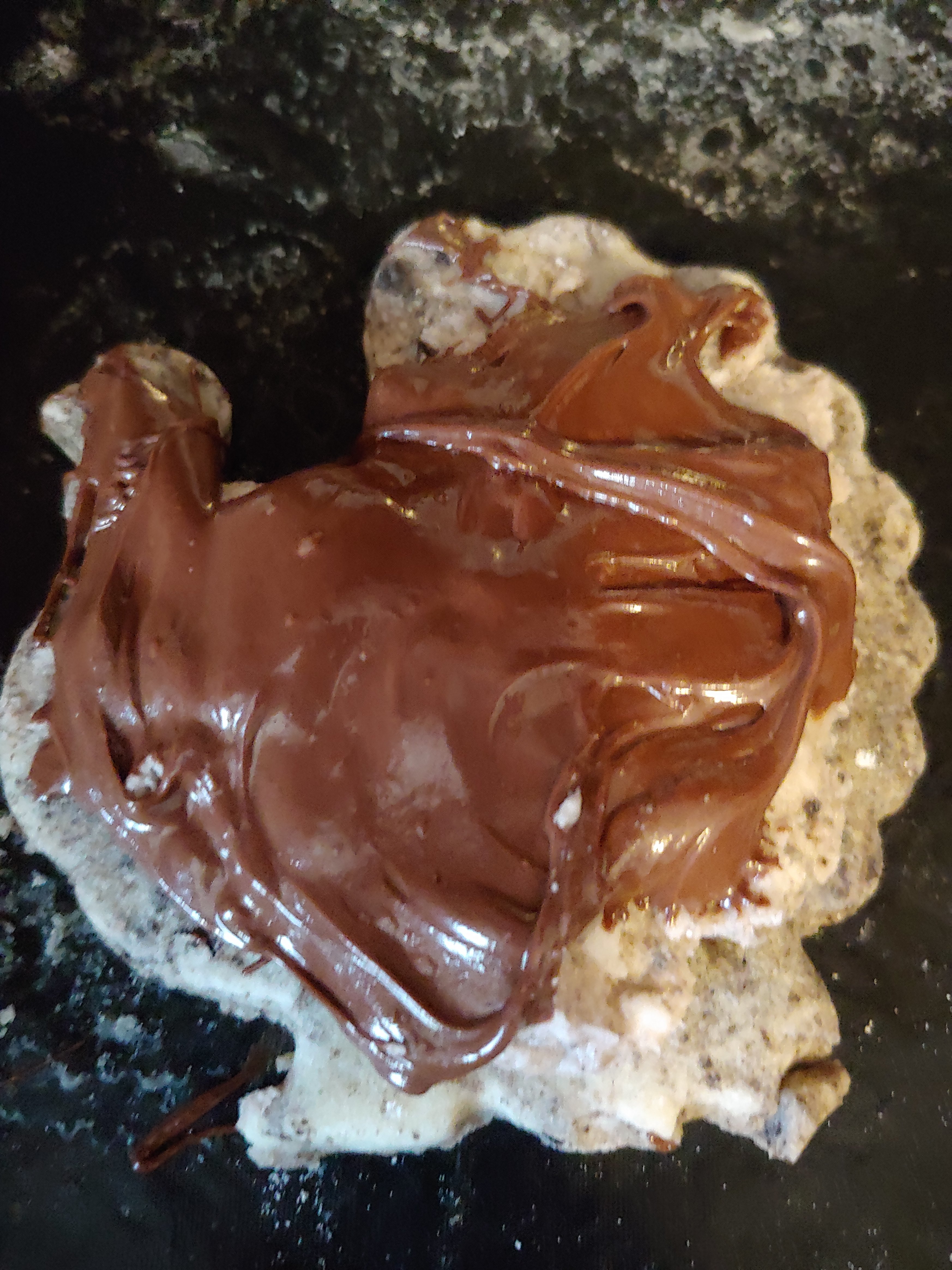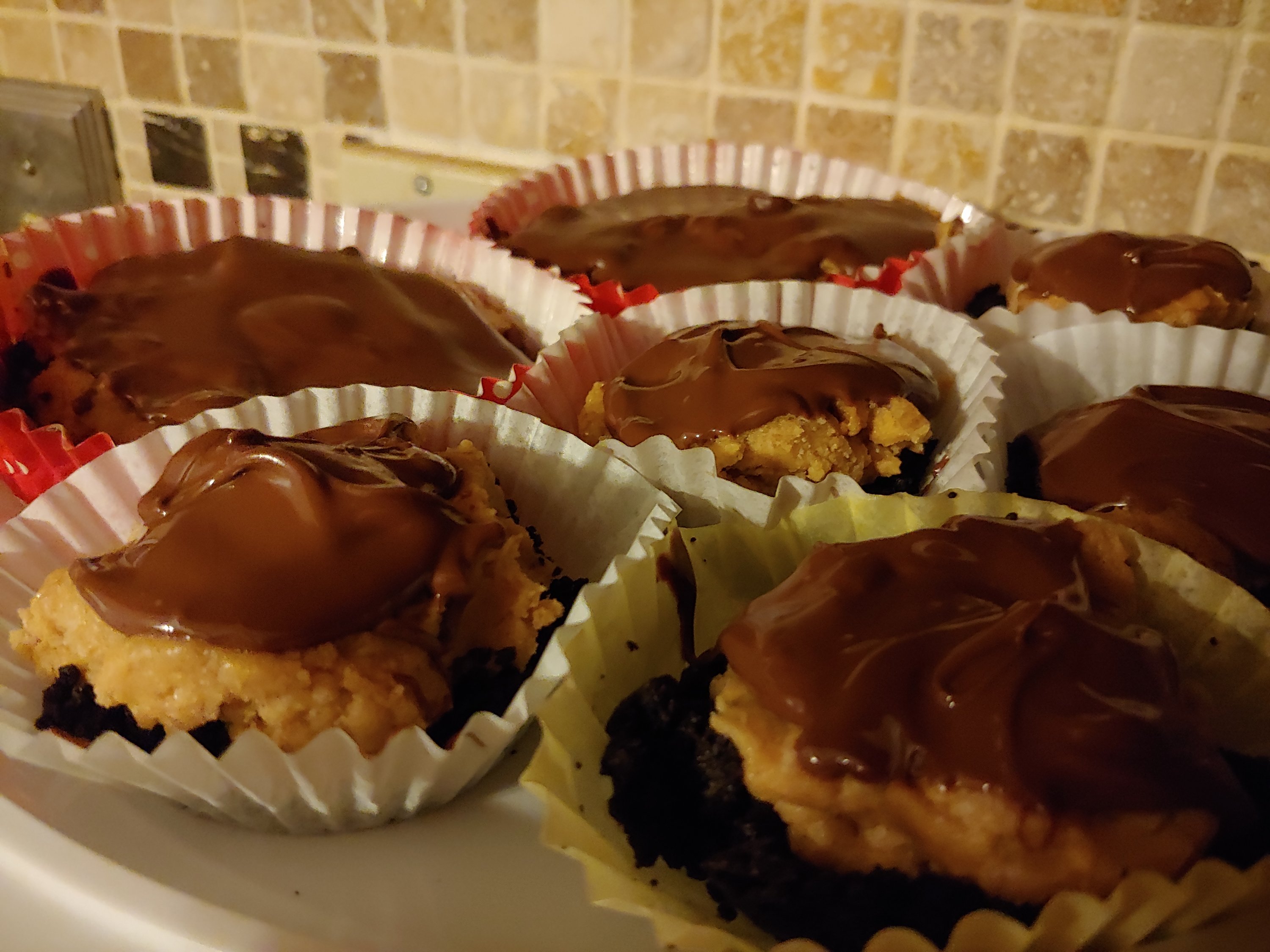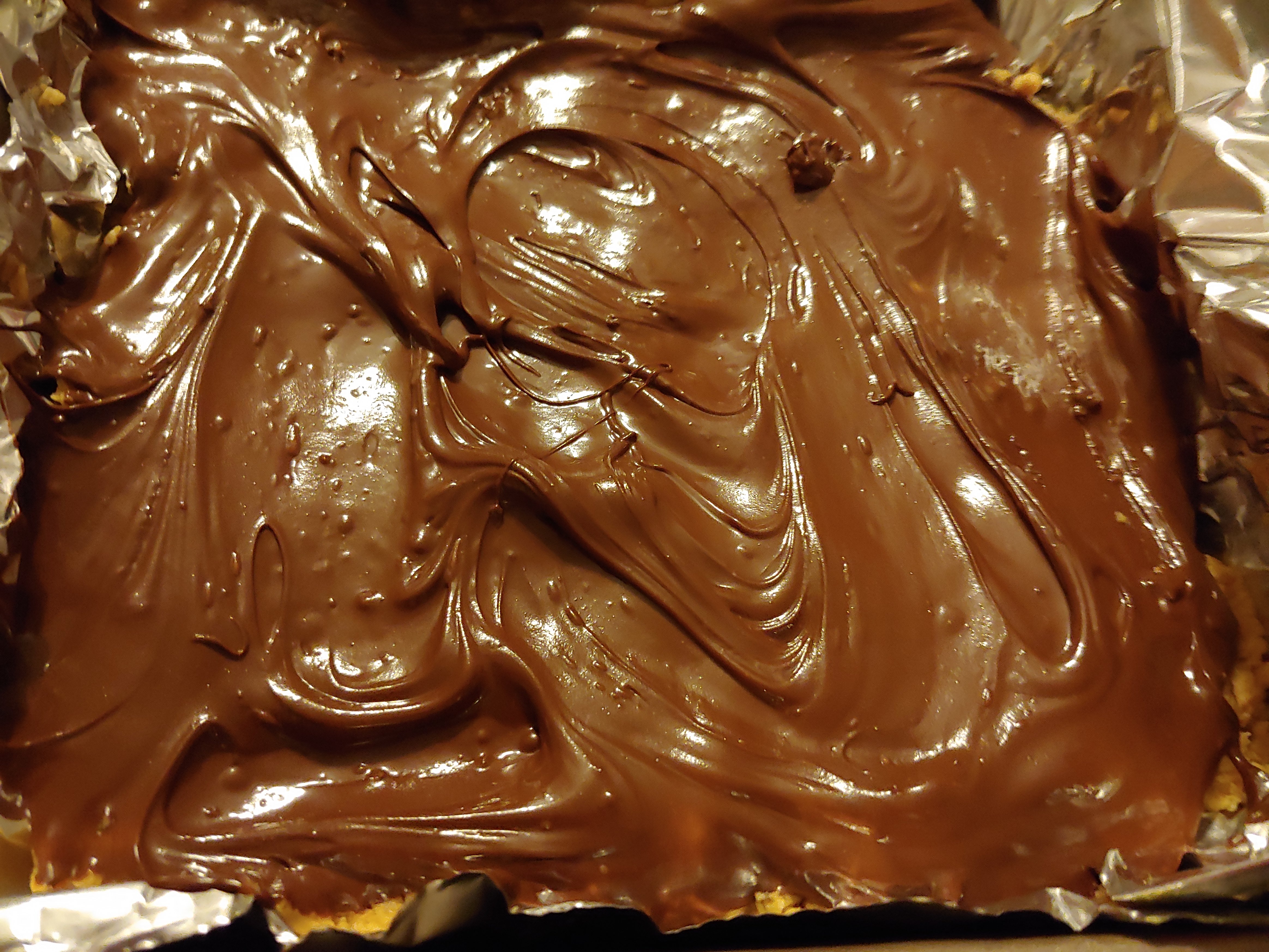 Top with melted chocolate. (I microwaved 2 cups of,chocolate chips w 1 tbs shortening in 30 second increments until I could stir mixture smooth.)
