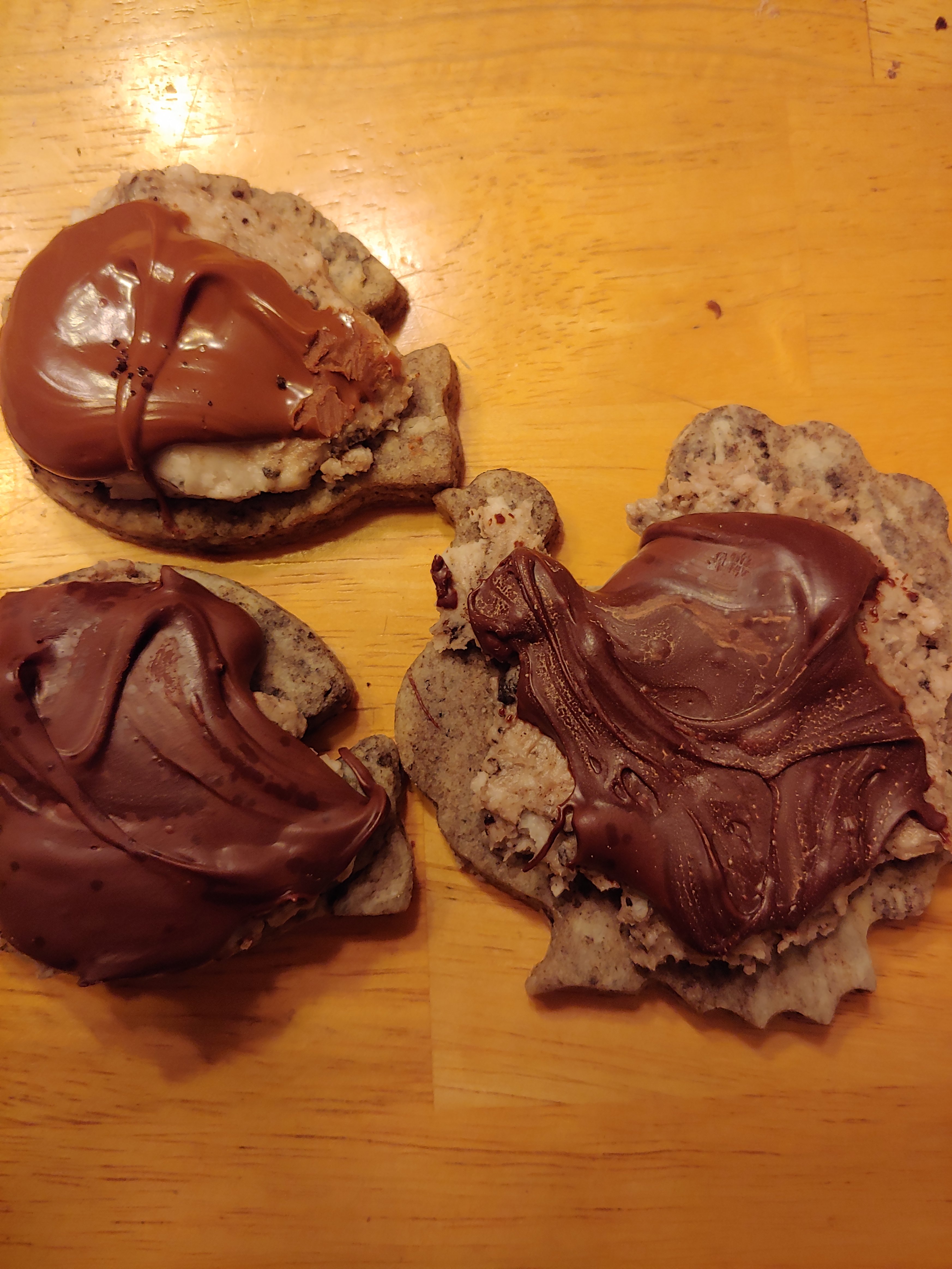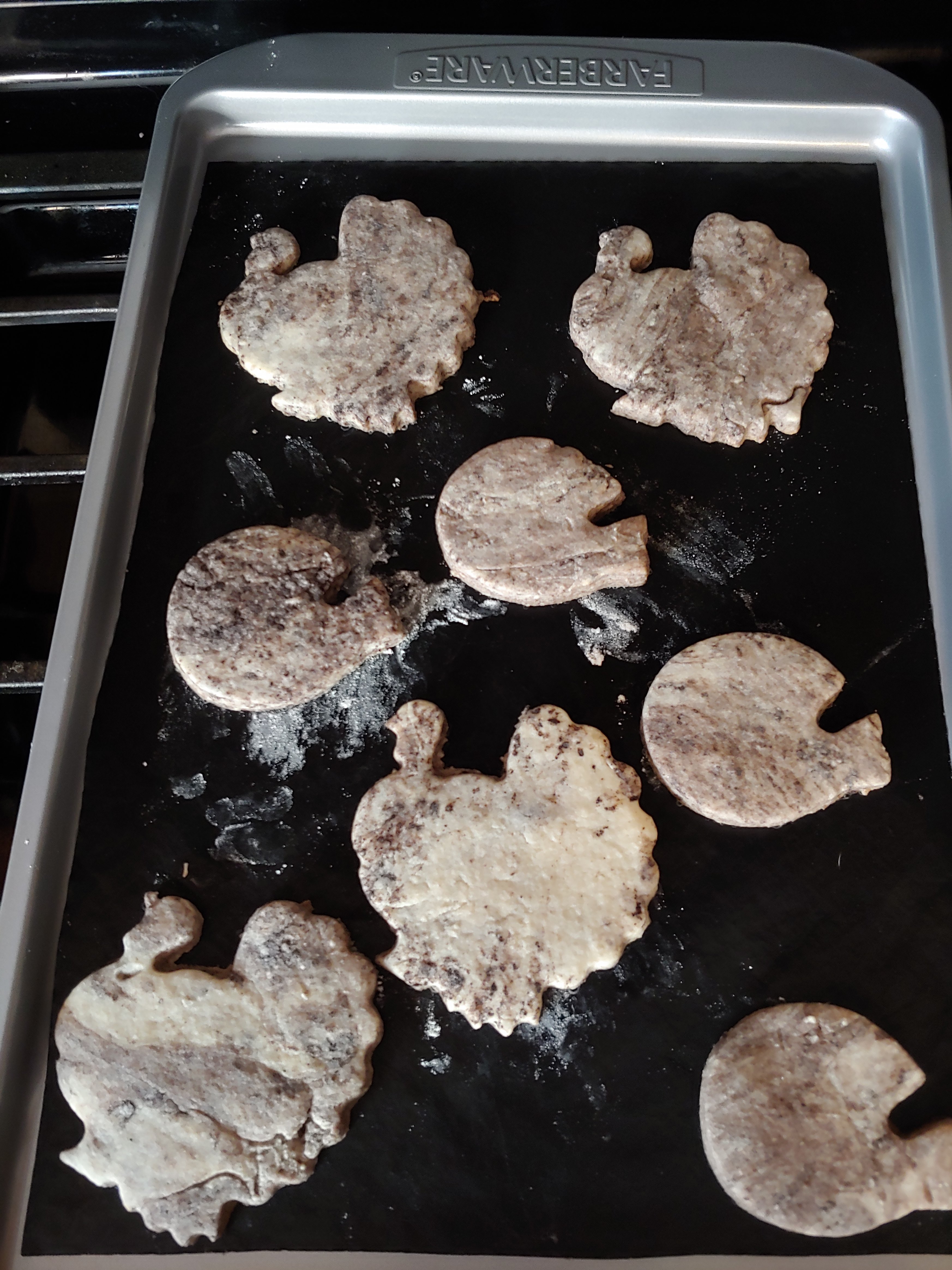 The holidays are here and thus begins my holiday baking season. I also need to bake on NFL game day to ensure a Bills win. Cutout cookies are my favorite and although my decorating skills are subpar at best, people enjoy what I bake. Recently i found new extracts , like cookies n cream and chocolate, so i bought some. I used the cookies n cream first. I just basically took a sugar cookie recipe and instead of using vanilla, I used the cookies n cream. I also added crushed dark chocolate Oreos. I topped them with a homemade oreo filling and melted chocolate chips. Thanksgiving is Thursday, so I used my turkey, pumpkin, football and football helmet cookie cutters.