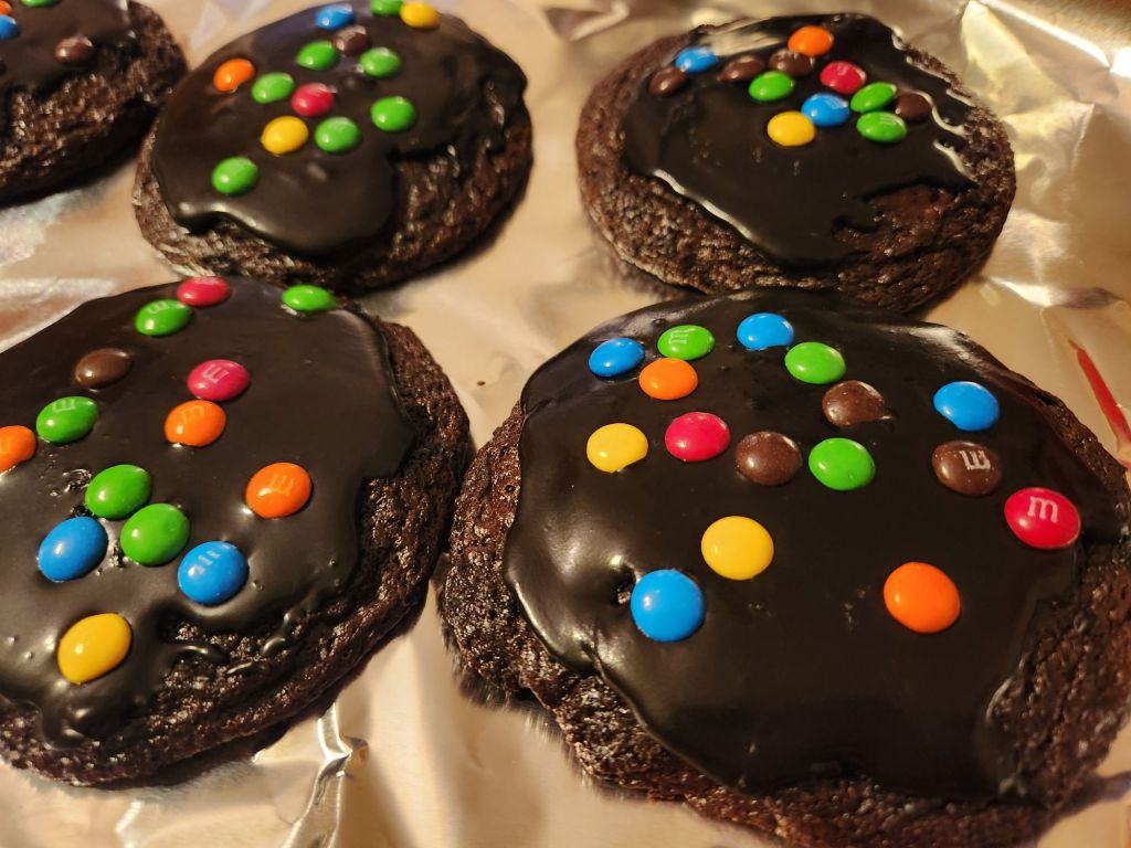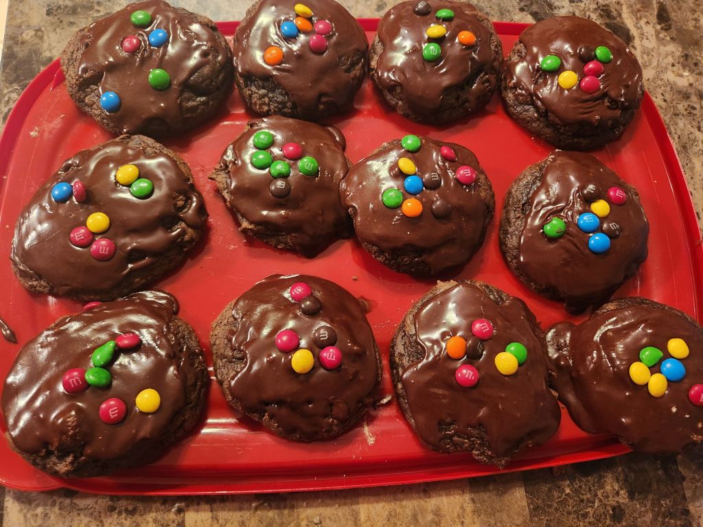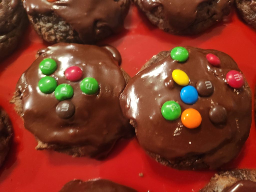 Directions – in a bowl, cream butter and sugar. Add eggs and vanilla. Blend in melted chocolate. Fold in dry ingredients. Blend in nuts. Scoop out 1/4 cups dough. Chill a few hours. Preheat oven to 350 degrees. Line a cookie sheet with parchment paper. Stagger cookies on sheet. Bake 13 to 15 minutes, no longer. Cool completely.