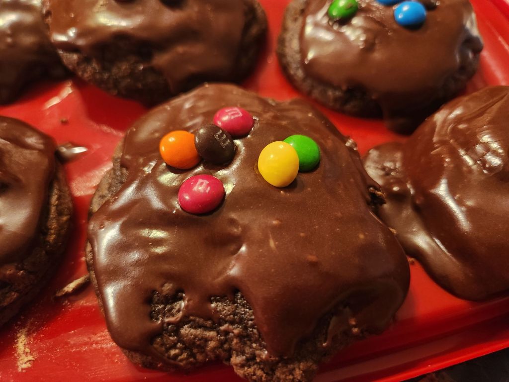 These are a soft, thick, puffy chocolate cookie with finely ground walnuts. You can leave them out if you want, use another kind, or throw in some chocolate chips.