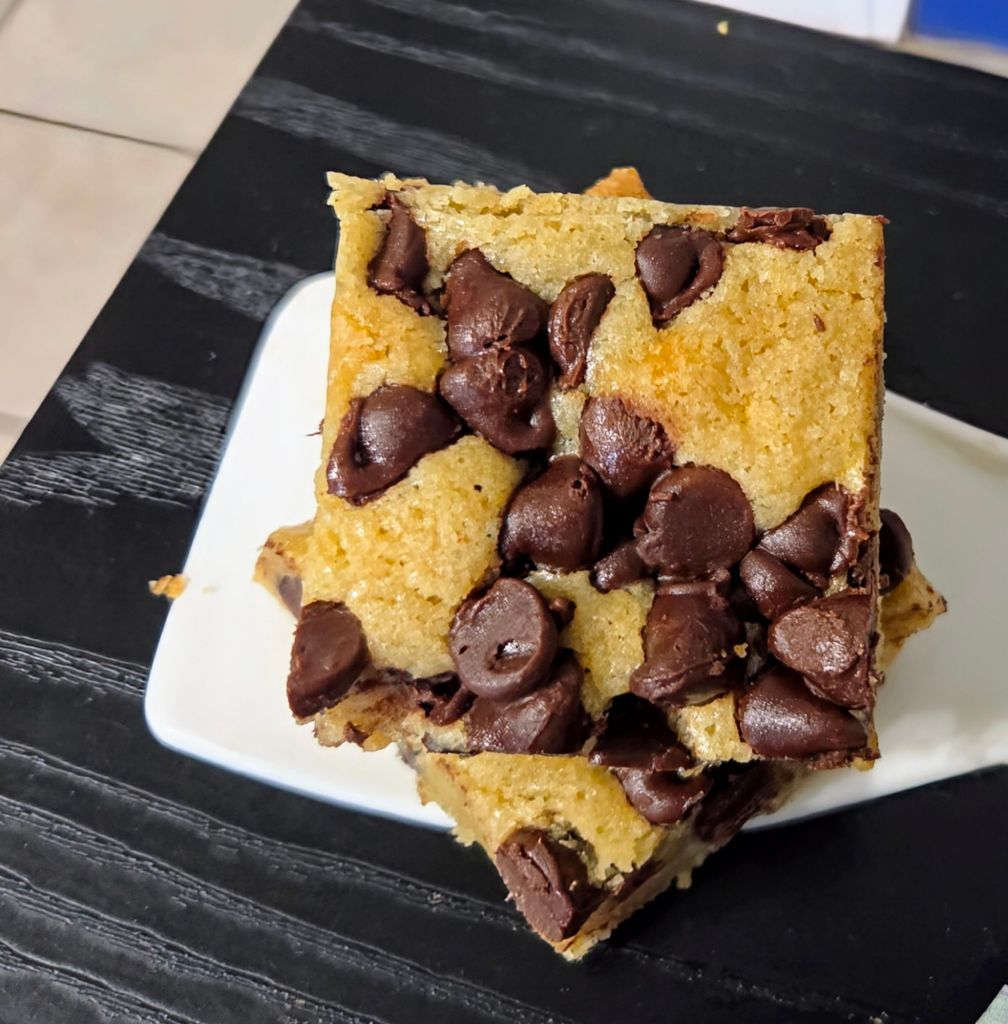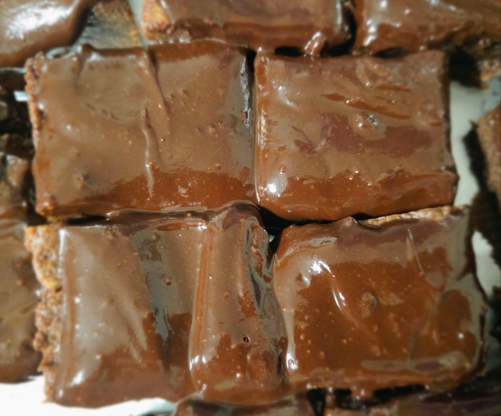 Remember to scoop your flour bag into your measuring cup so you get the right amount. Also freeze the uncooked bars for 30 minutes before baking to keep the fudge filling in place. And, preheat your oven to 350 degrees before baking.