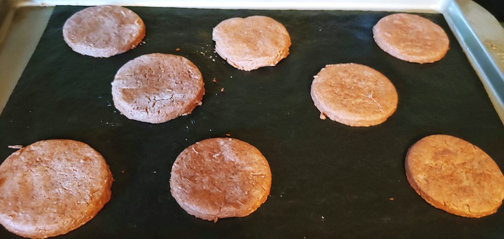Directions – cream butter and brown sugar. Add egg and extract. Fols,in,dry ingredients. On a floured surface, roll out to desired thickness and cut with a round cookie cutter. I chilled the dough for a few hours so the cookies would not spread. Preheat an oven to 350 degrees for 20 minutes. On a cookie tin lined with nonstick baking liners, stagger cookies.