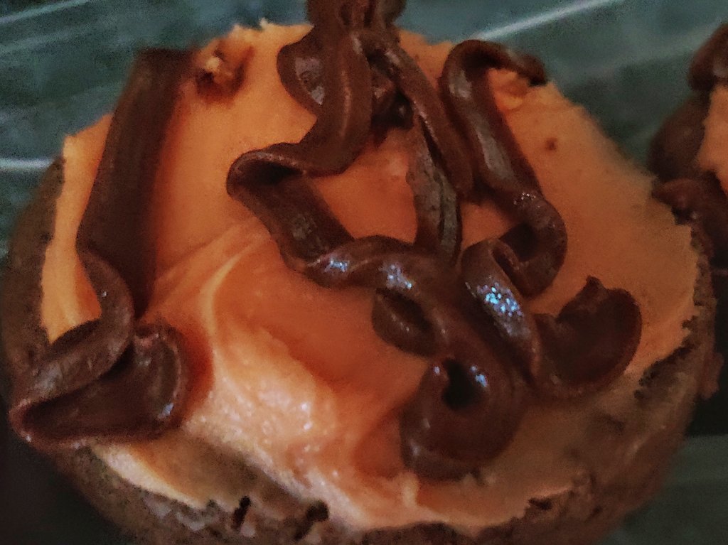 • Blend butter, powdered sugar and cocoa. Add enough milk, 1 tsp at a time to get the right consistency to pipe on stripes. (I cut off the end of a sandwich baggied and piped it, disastrously, as you can see). Store in covered container.