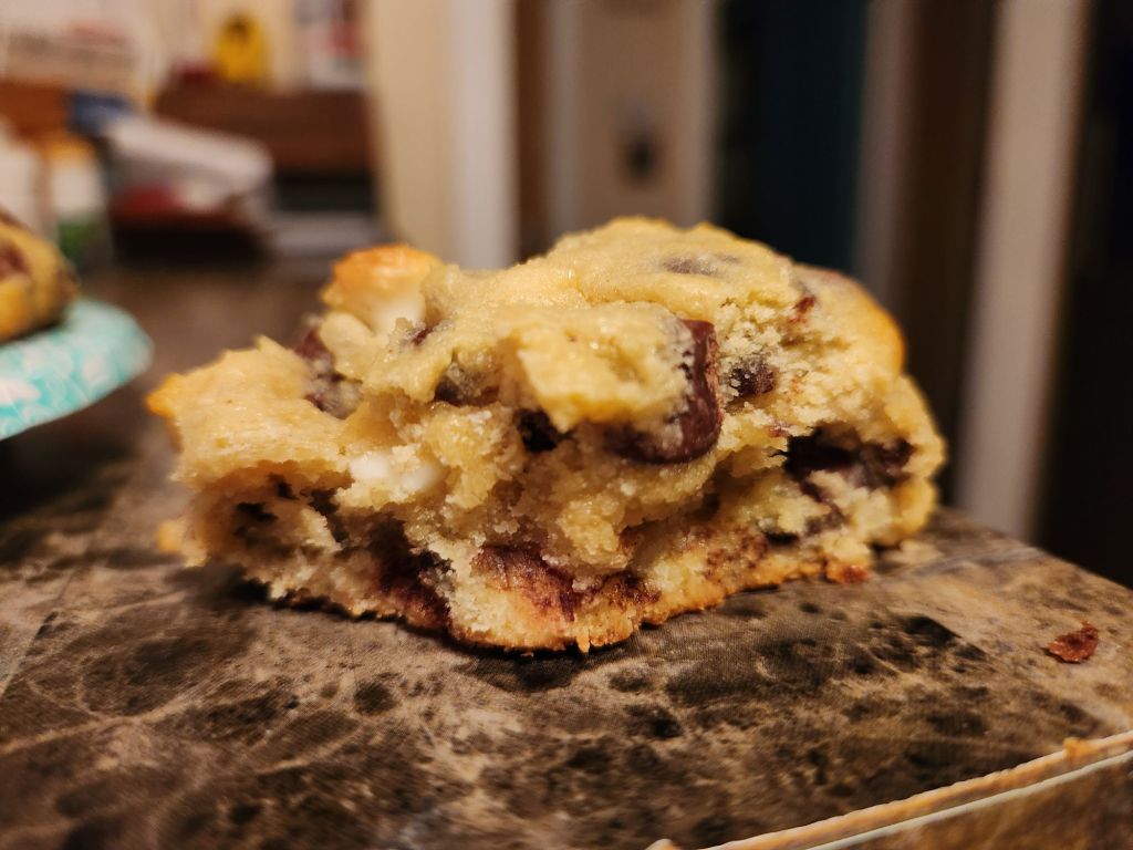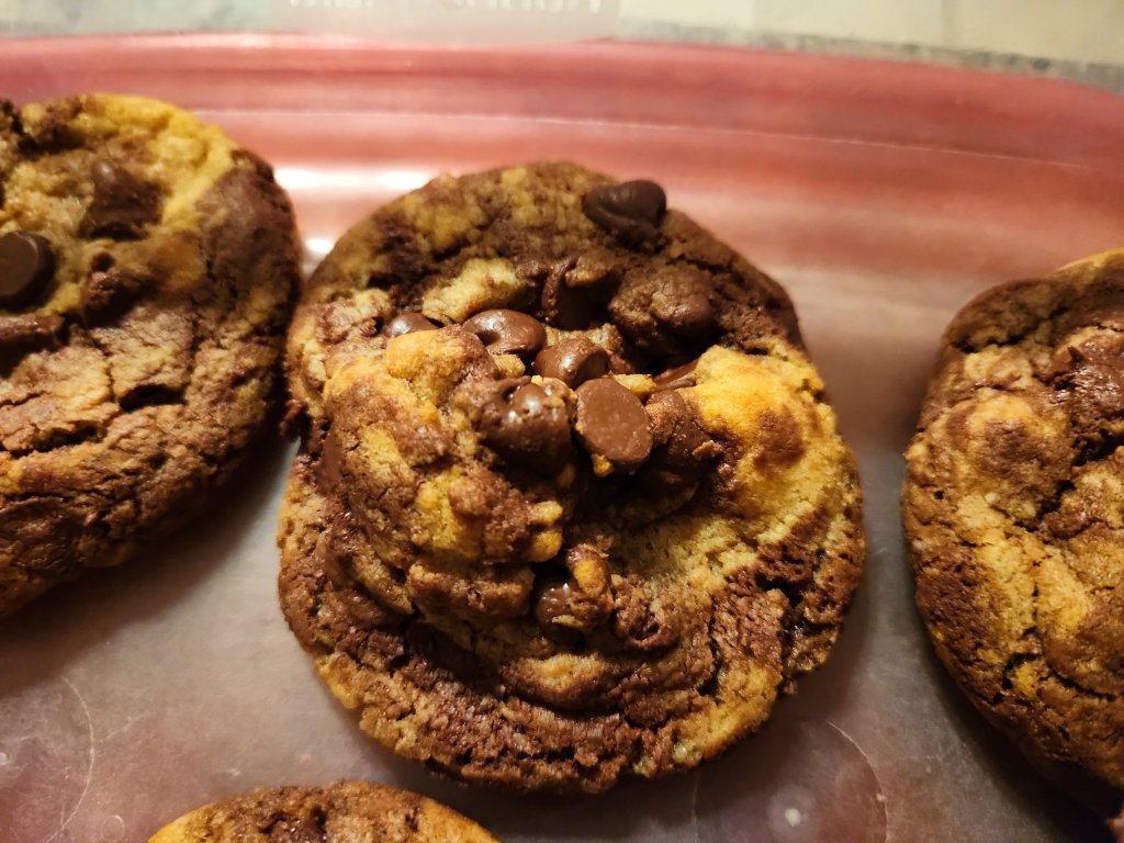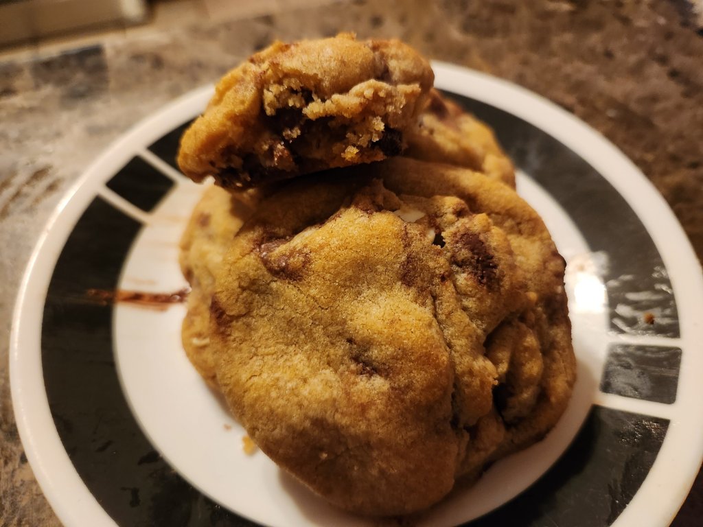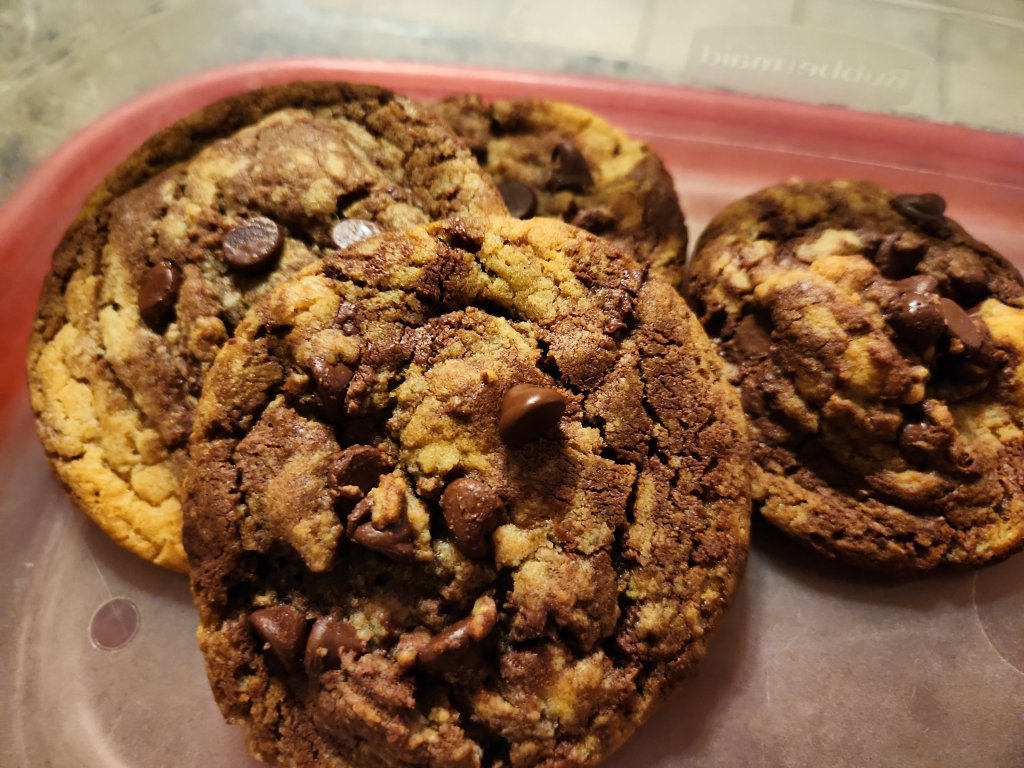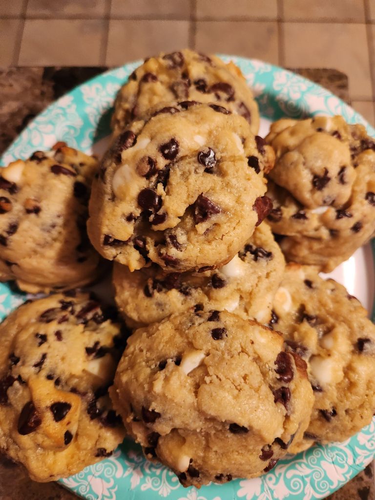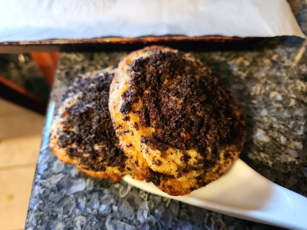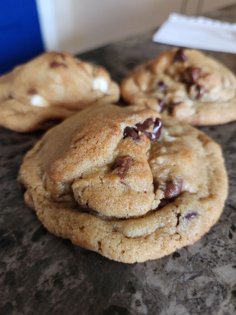 Directions – in a bowl, cream butter and sugar. Add eggs and vanilla. Blend in melted chocolate. Fold in dry ingredients. Blend in nuts. Scoop out 1/4 cups dough. Chill a few hours. Preheat oven to 350 degrees. Line a cookie sheet with parchment paper. Stagger cookies on sheet. Bake 13 to 15 minutes, no longer. Cool completely.