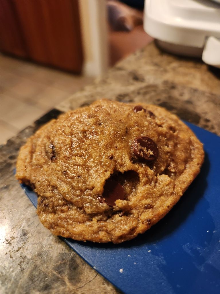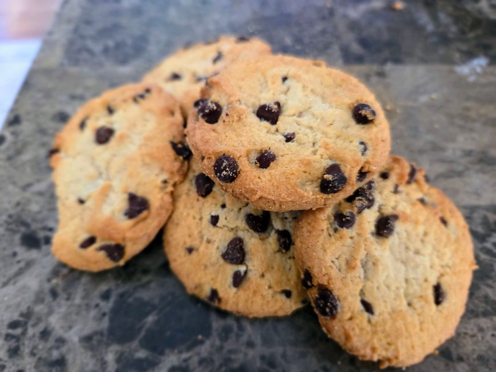 I have seen suggestions to add finely ground cookies or pop tarts to homemade cookies for a neat twist so I have done that with these chocolate chip cookies, adding 2 cups of finely ground chips ahoy.
