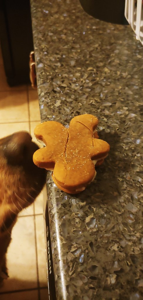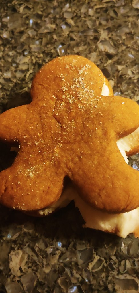 To celebrate our win over the Bengals (which was pretty stressful), I present gingerbread men/reindeer cookie sandwiches. One way they are gingerbread men,
