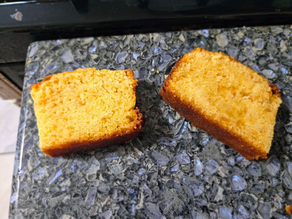 Line a 8×5 loaf pan with parchment paper and spray with baking spray. Set aside. In a bowl, cream butter and sugar. Beat in eggs one at a time, then mix in vanilla and condensed milk. Fold in dry ingredients and graham cracker crumbs. Evenly spread into prepared pan. Place in oven and turn oven to 350 degrees. Bake 35 to 42 minutes (toothpick inserted in center comes out with a few moist crumbs).