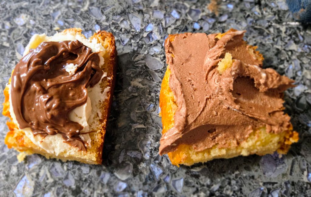 A bit of advice, apply buttercream first, then melted chocolate. It is much easier than putting the chocolate on the cake first, then buttercream, I lesson I learned as seen below.
