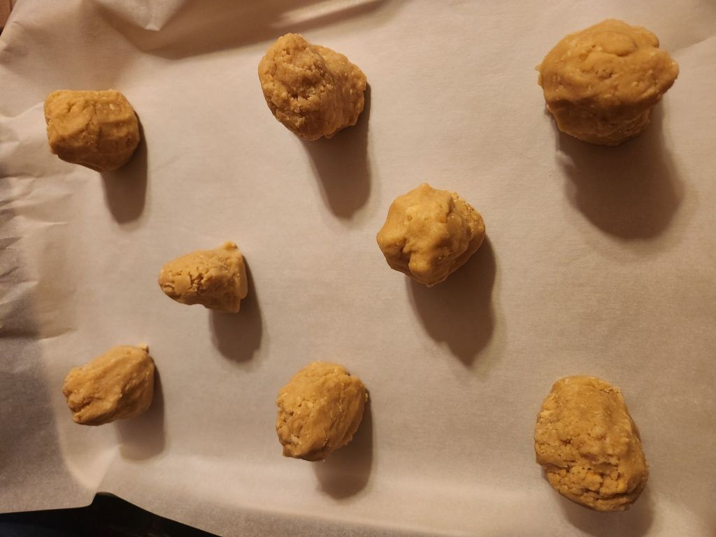 Remember to scoop your flour and baking cocoa from their containers into the measuring cups so you get the right amount. Also, after scooping and smashing the dough into individual parts, i chilled them to keep them from spreading too much, but if you don’t have time, that is fine.