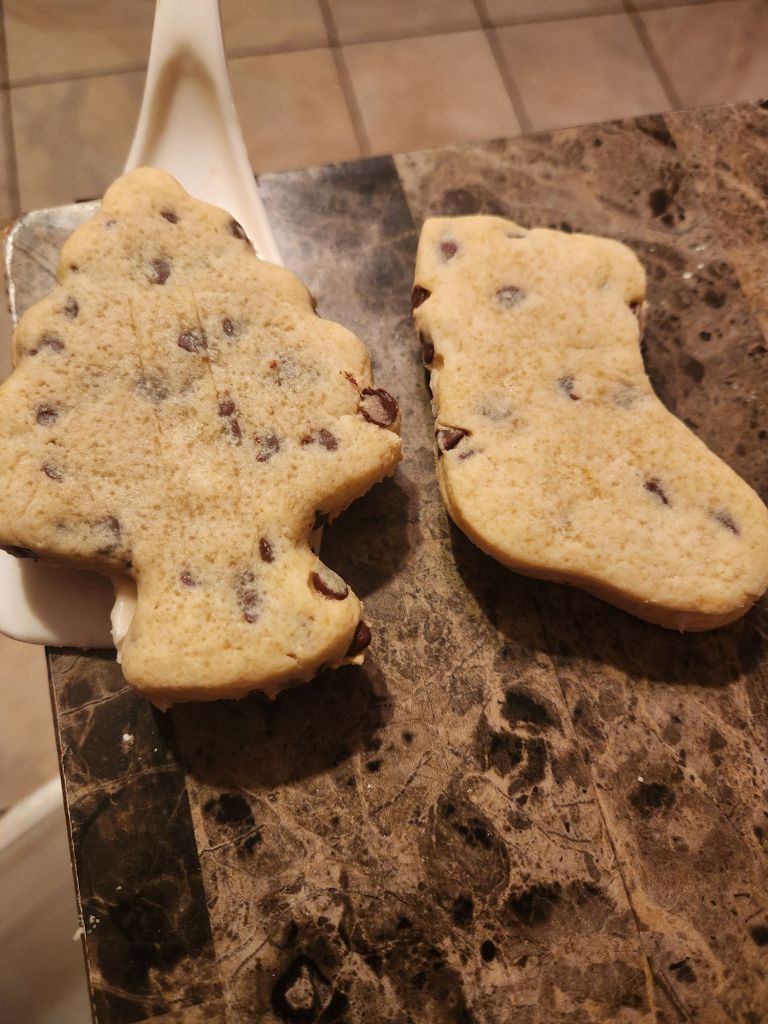To celebrate our win over the Bengals (which was pretty stressful), I present gingerbread men/reindeer cookie sandwiches. One way they are gingerbread men,