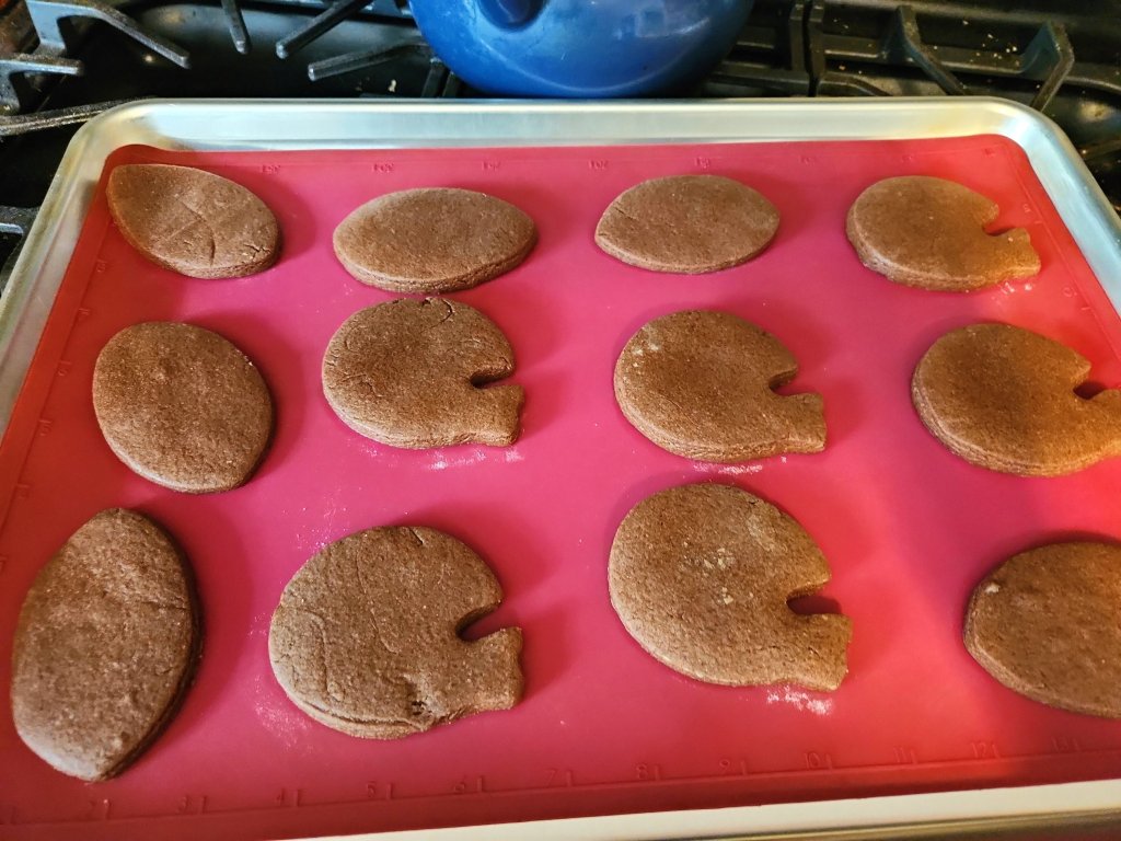 Directions – in a bowl, cream crisco and sugar. Blend in eggs well. Add vanilla. Mix in dry ingredients. You can chill the door in a covered container for a few hours if you want. Or bake them right away. When ready to bake, preheat oven to 350 degrees, and line a cookie sheet with parchment paper. Flour a flat surface with flour. Roll dough to desired thickness and cut. Place on cookie sheet. Bake 7 to 8 minutes, no longer. Cool completely.