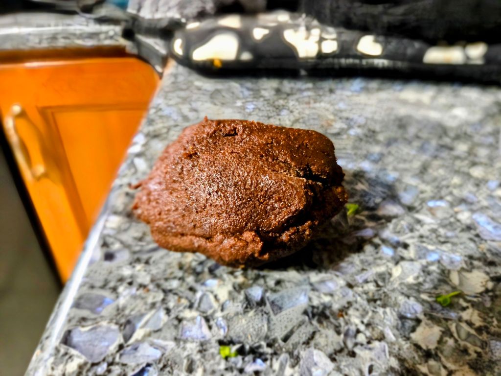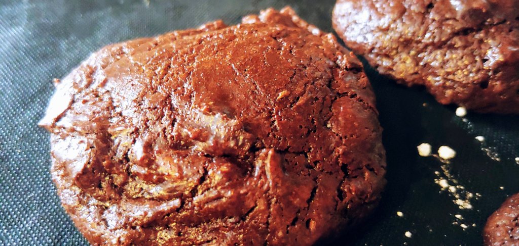 Directions – in a bowl, cream butter, brown sugar and sugar. Add eggs and vanilla. Blend in melted chocolate chips. Fold in dry ingredients. Mix in m&ms and milk chocolate chips. Scoop out 1/4 cups dough. Chill a few hours. Preheat oven to 350 degrees. Line a cookie sheet with parchment paper. Stagger cookies on sheet like below.