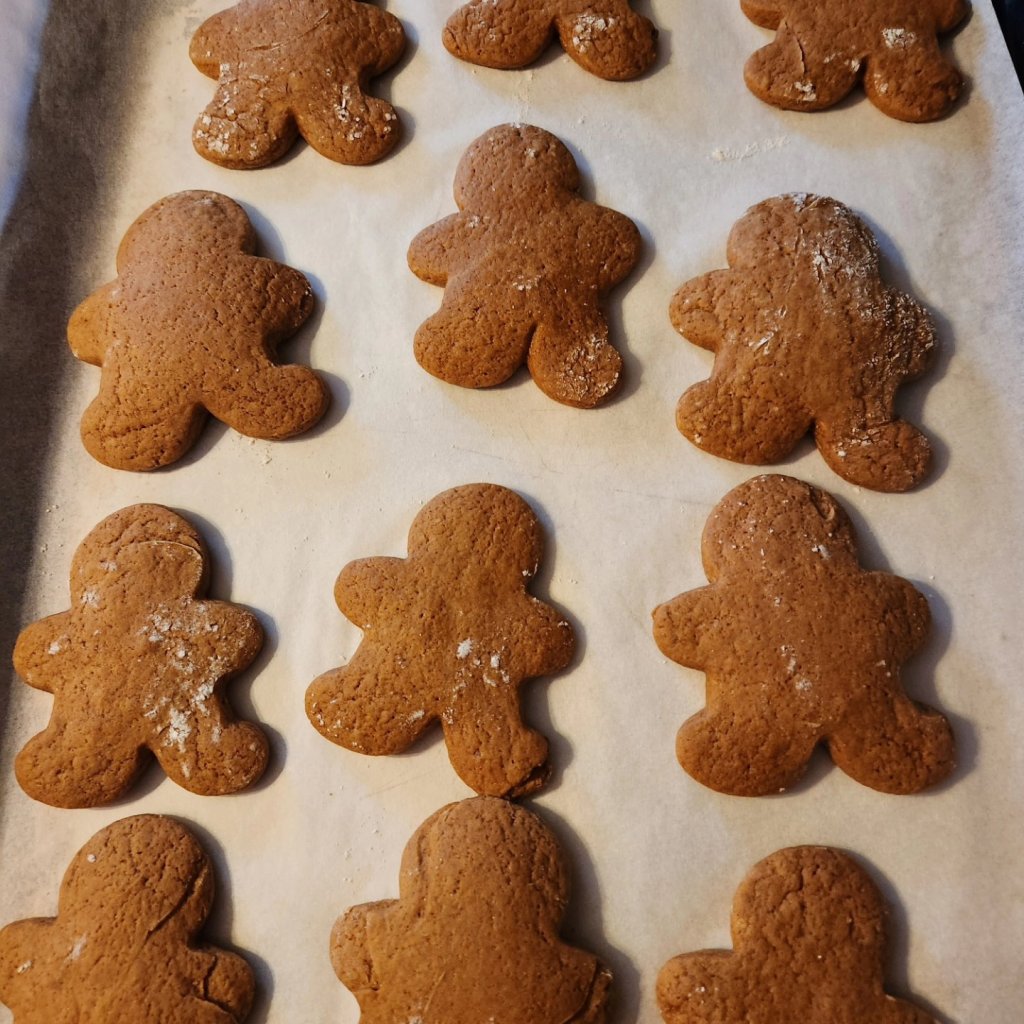 Directions – in a bowl, combine butter and brown sugar. Add molasses, egg and vanilla. Blend in dry ingredients. Dough will be crumbly. You may need to add a few tbs of water to make dough easier to use with. Roll ans cut. Chill doughs a few hours. Preheat oven to 325 degrees. Line a cookie sheet with parchment paper. Stagger cookies on sheet. Bake 8 to 18 minutes, no longer. Cool completely.