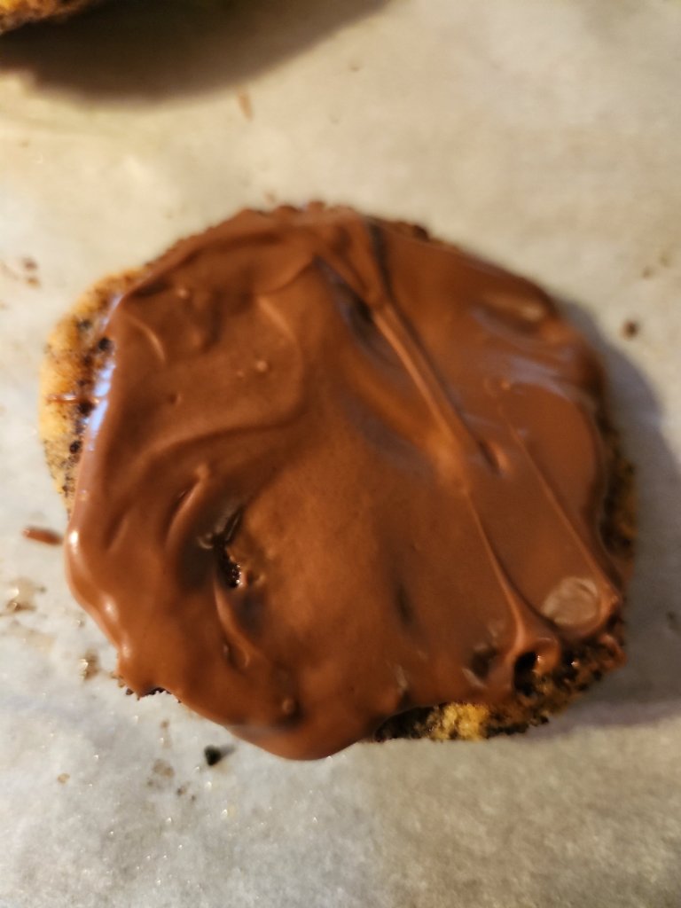 I wanted to do a treat with peanut butter, so I thought I would make a fudgy chocolate cookie, topped with edible peanut butter cookie dough and melted hershey kisses. A nice combo, if there ever was one.