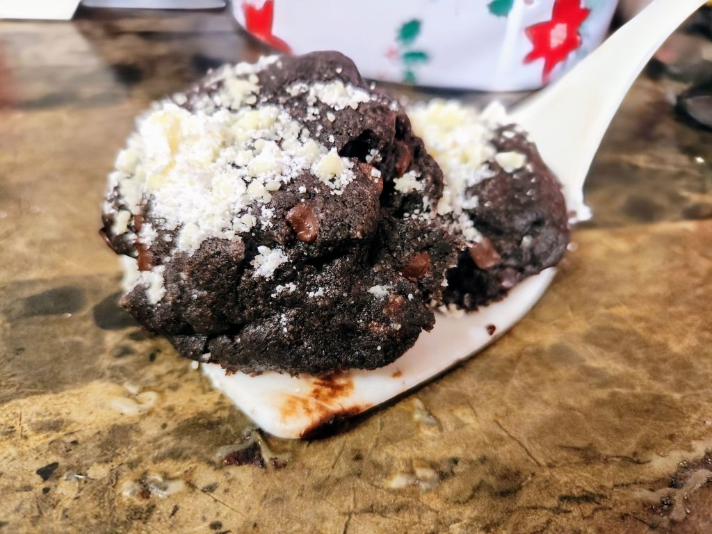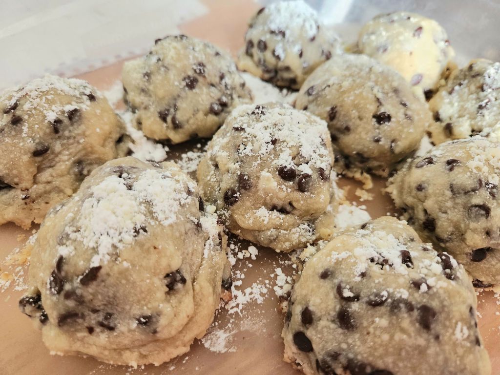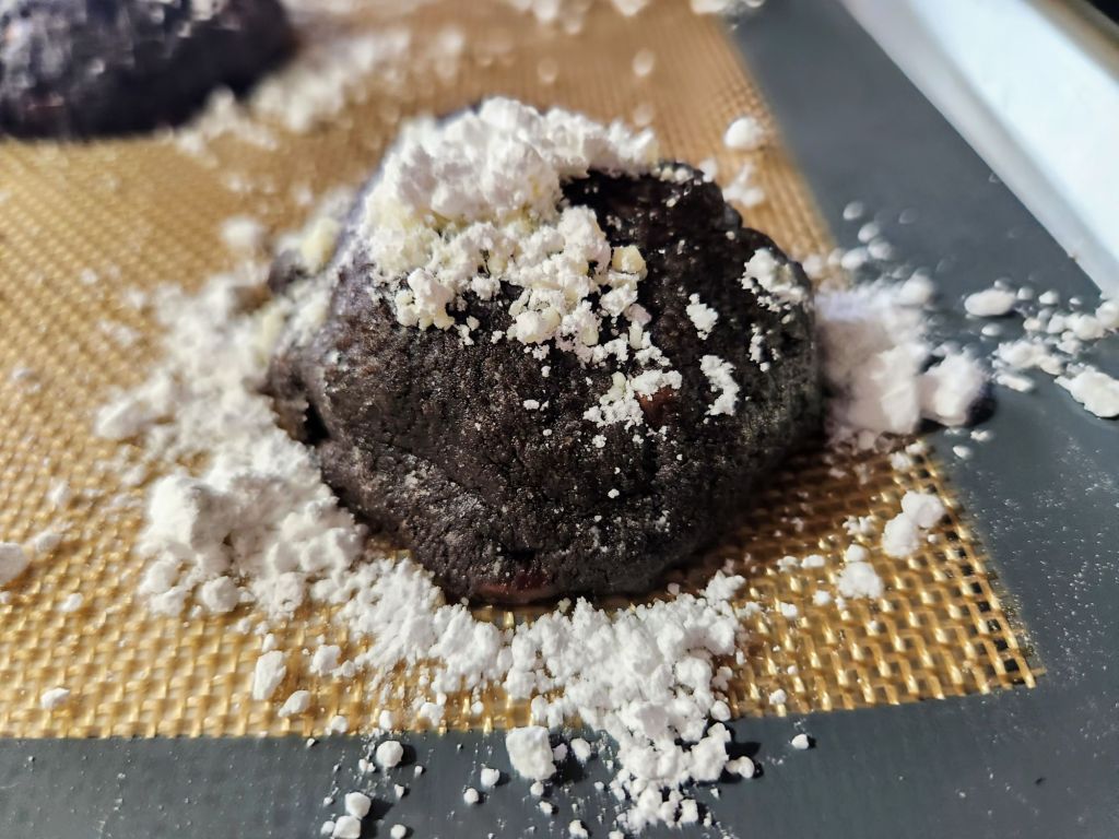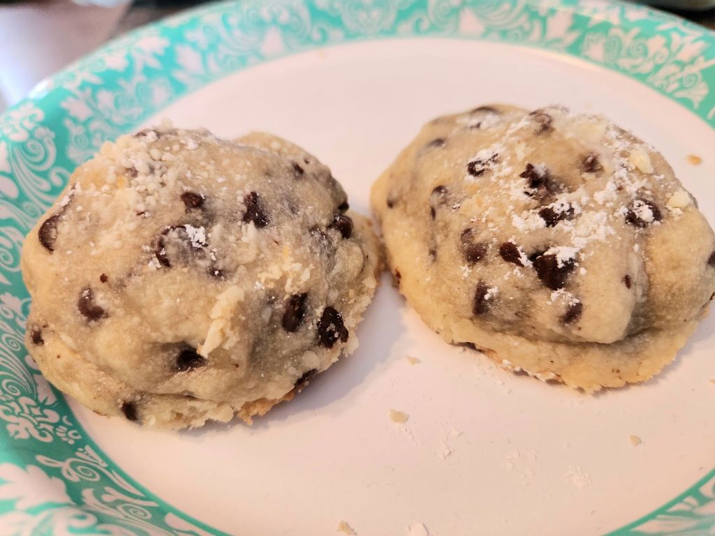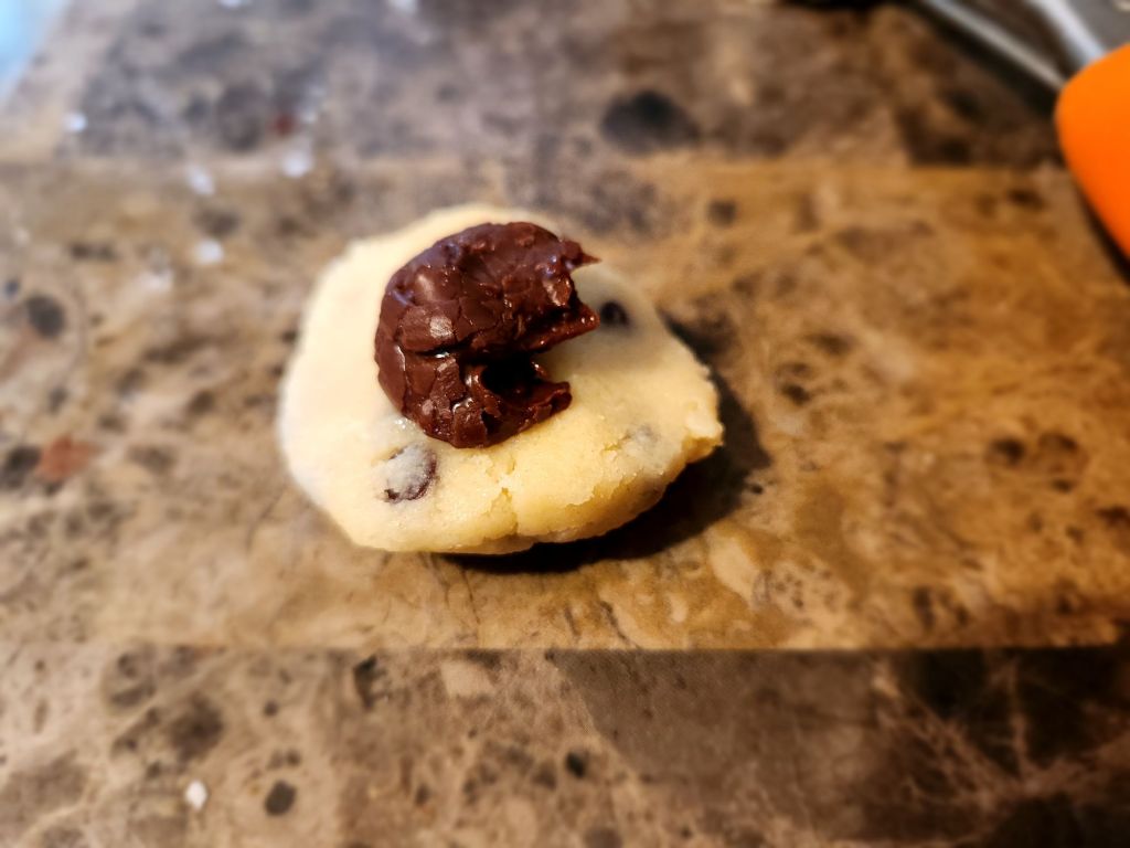 Last year, I tried to make the keebler magic middles cookies. They were a shortbread cookies with mini chocolate chips, filled with a gushy fudge filling. Last year, they were more like a stuffed chocolate chip cookie. Today, I went for a more shortbread cookie, like a Mexican wedding cake. I froze the fudge filling and cookies before baking. Next time, I may just fill the cookies with a piece of chocolate baking bar.