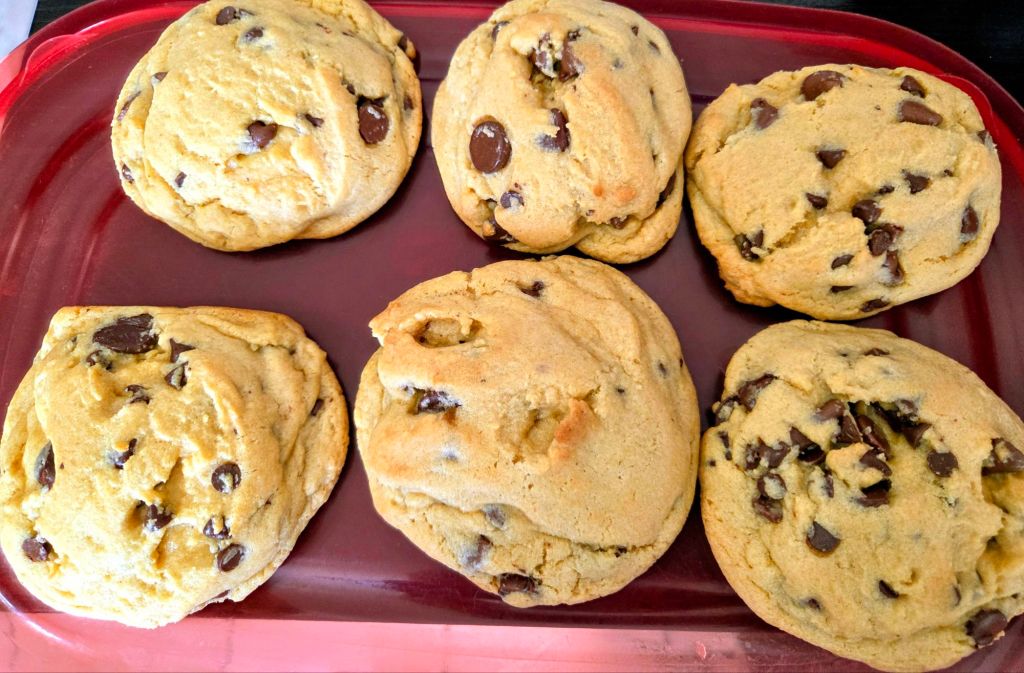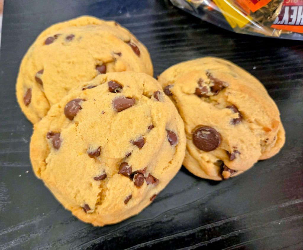 Directions – preheat oven to 350 degrees. Line and 8×8 pan with tin foil and spray with baking spray. In a bowl, cream butter, sugar and powdered sugar. Add egg and vanilla. Mix in dry ingredients. Scoop out 1/2 of dough and evenly spread into one side of the prepared pan. Add mini chips to rest of dough. Spread evenly into other side of pan.