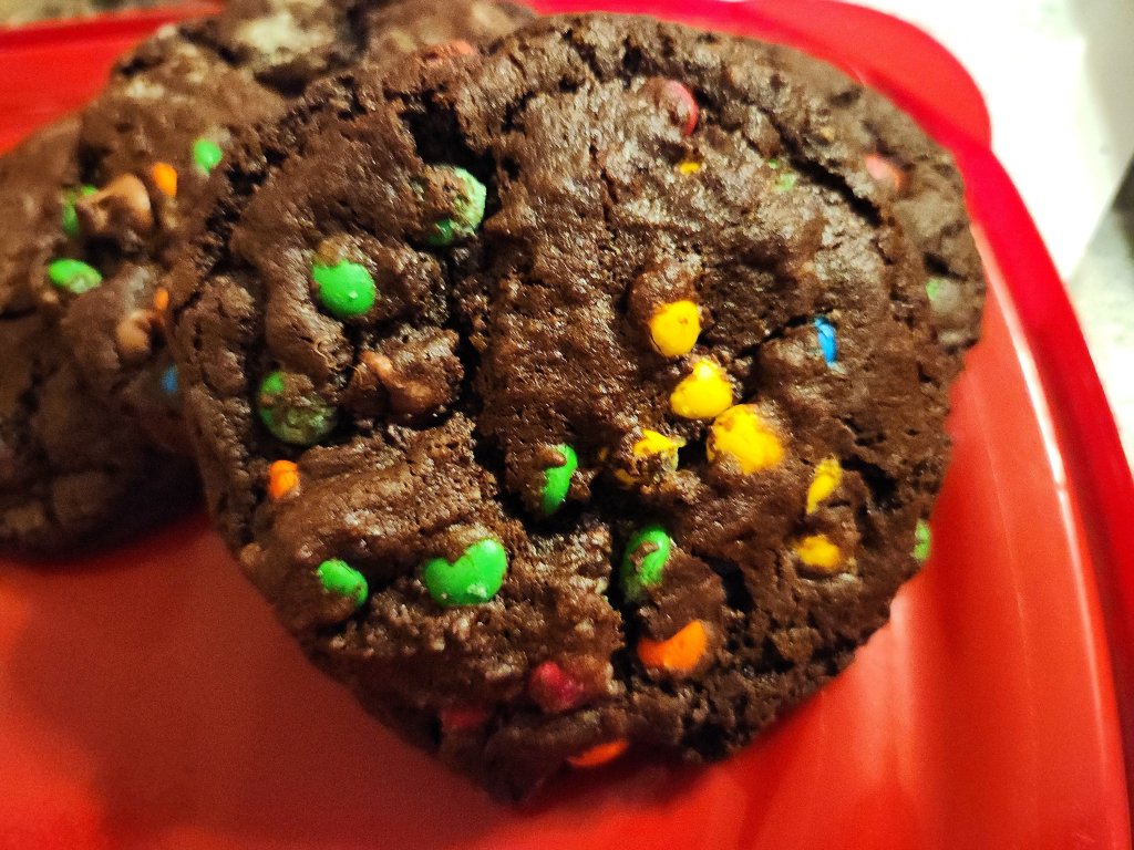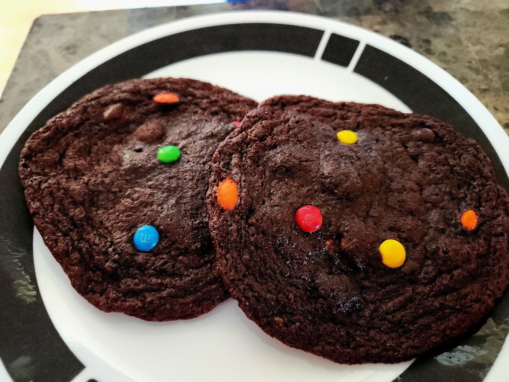 A simple, super chocolate cookie made using a brownie mix. They do not need to be frosted, but I chose to.. and I topped them with m&ms.